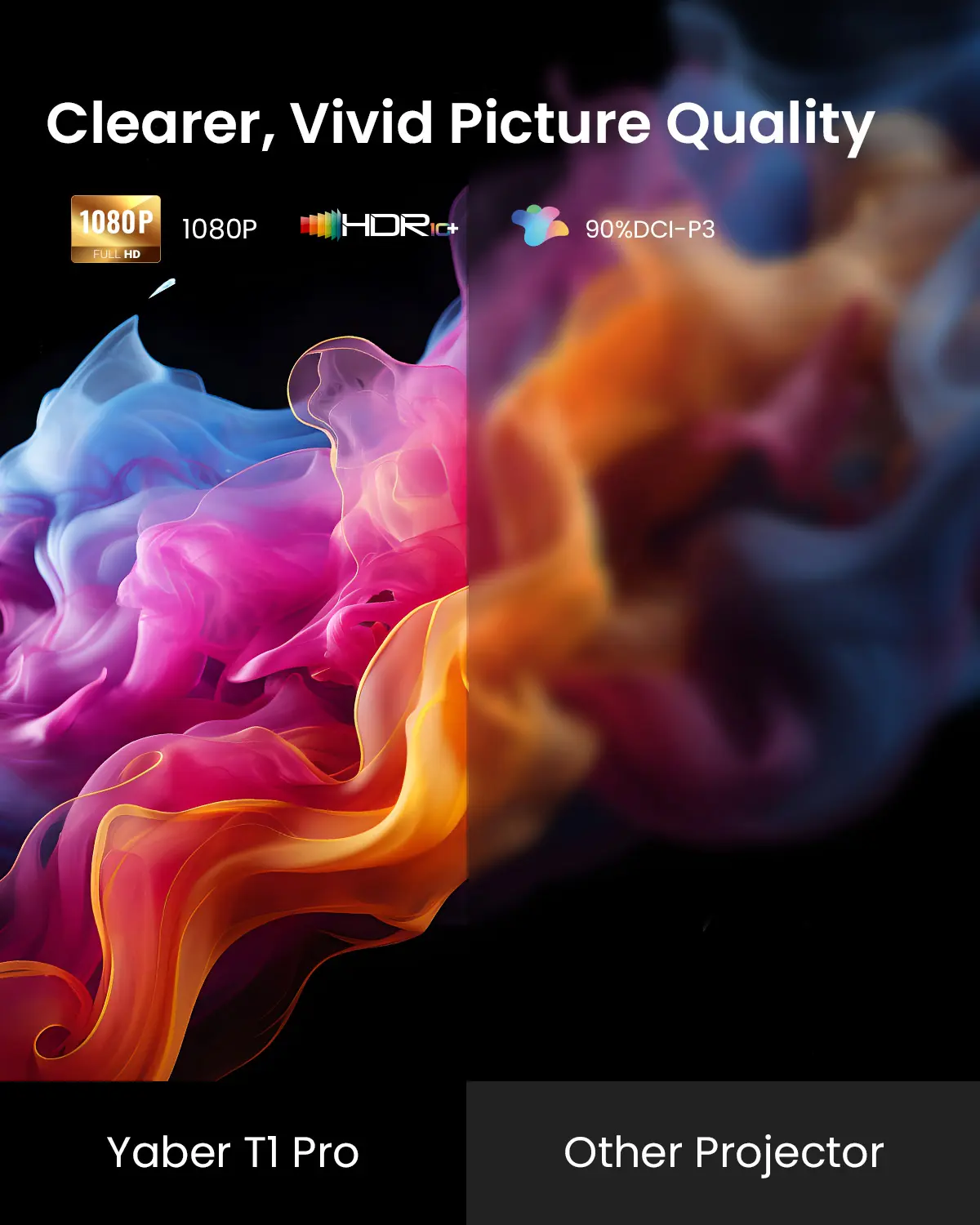 Yaber Pro V9 projector with WiFi and Bluetooth utilizes latest AI optical algorithms, paired with German high-transmittance lens, boasting an impressive 500 ANSI Lumens of brightness.