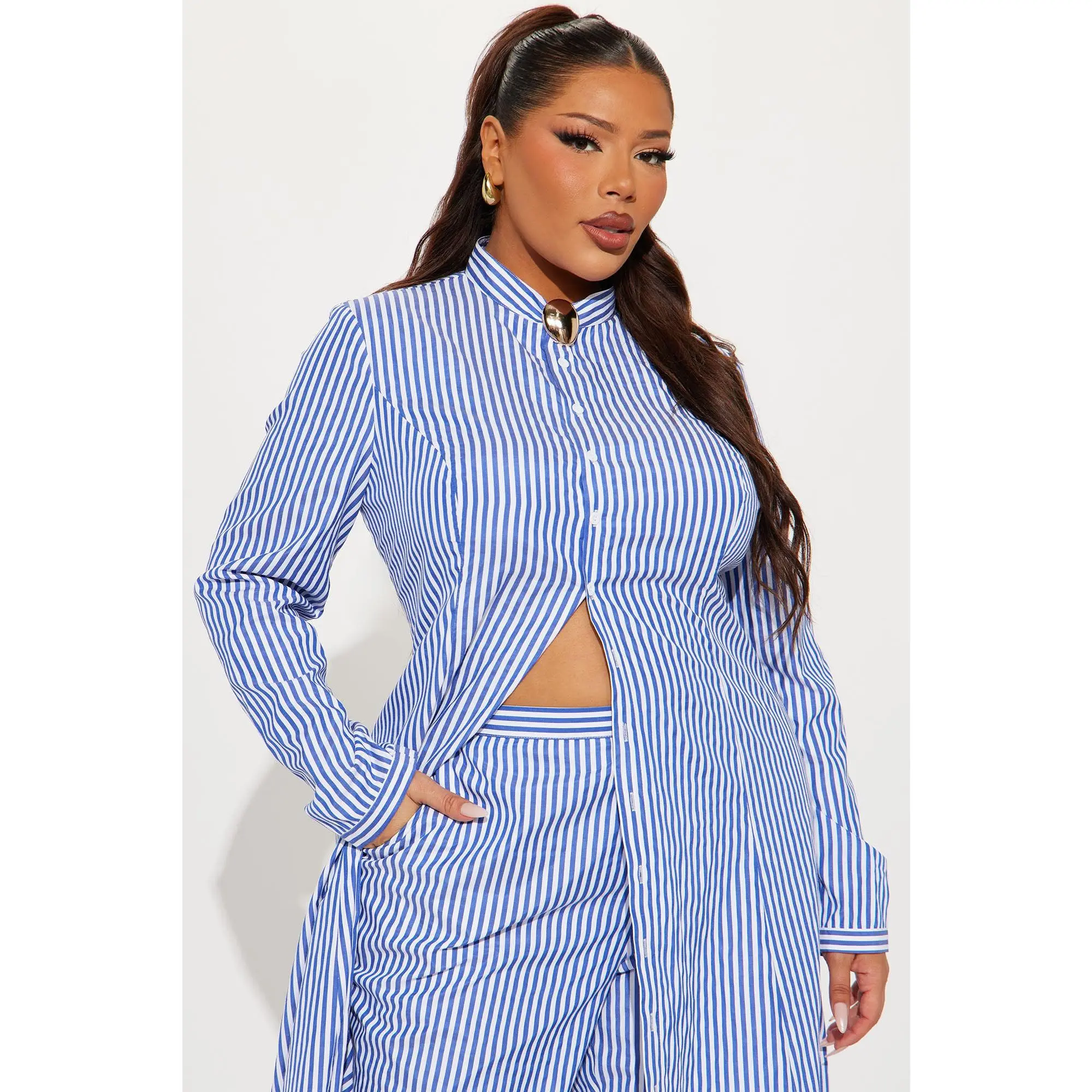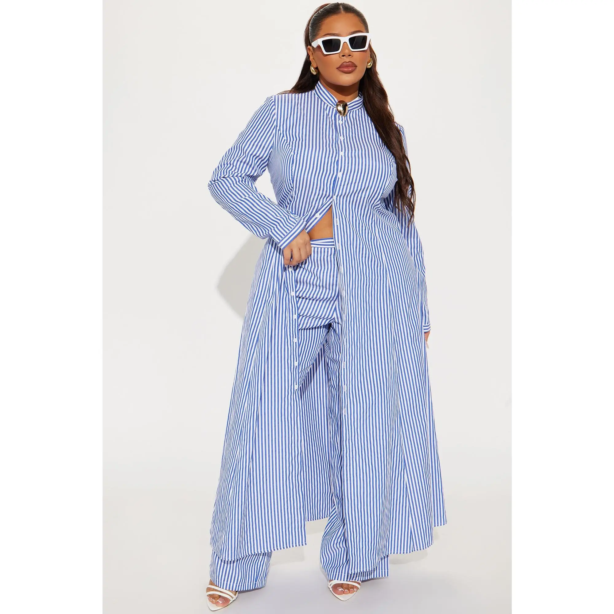 This pinstripe two piece set is really nice! ✨ You can dress this up or dress it down……. I love that the shirt comes long over the pants! ✨ You will feel absolutely amazing in this outfit!✨✨ #pinstripe #twopieceset #stylish #fashioninspo #classy