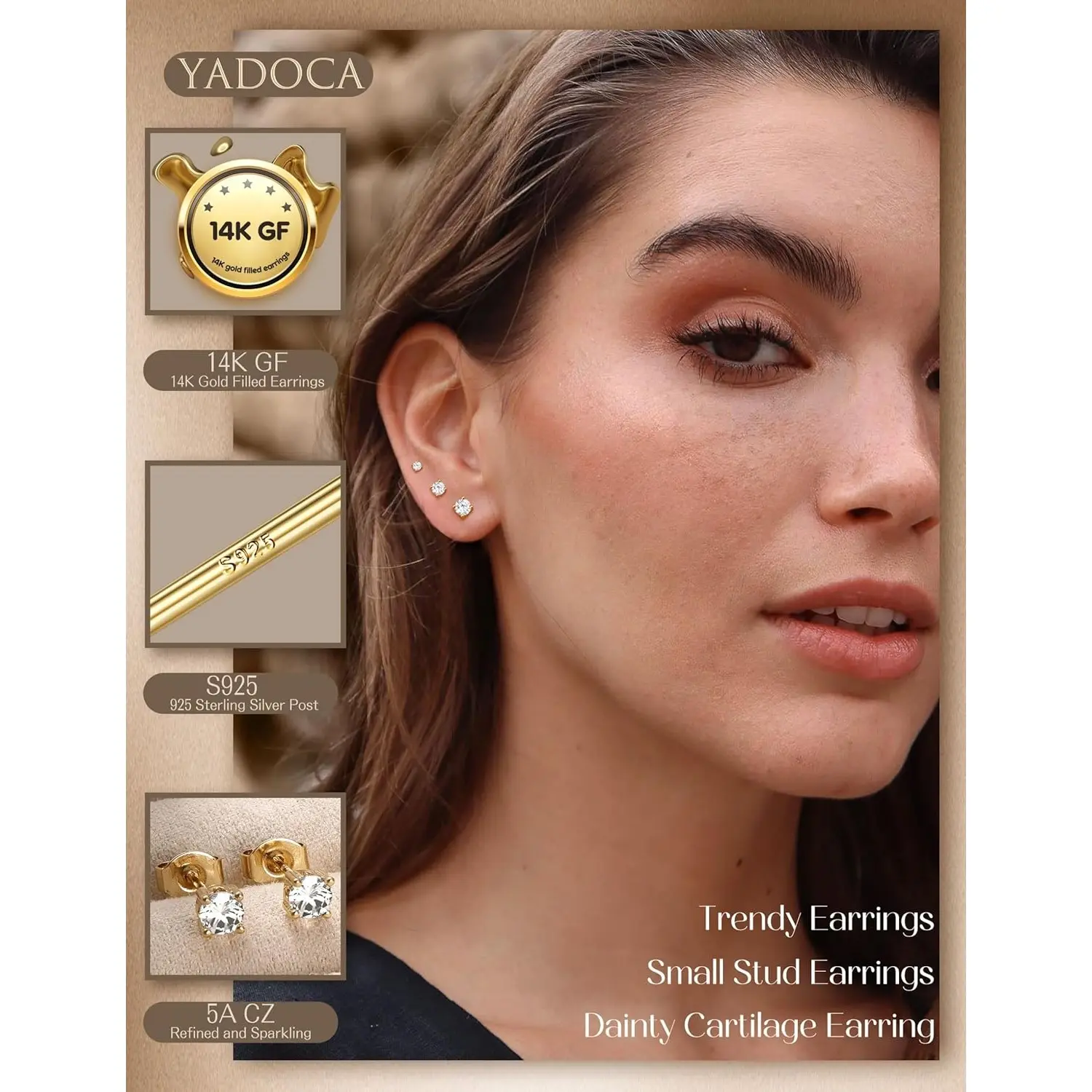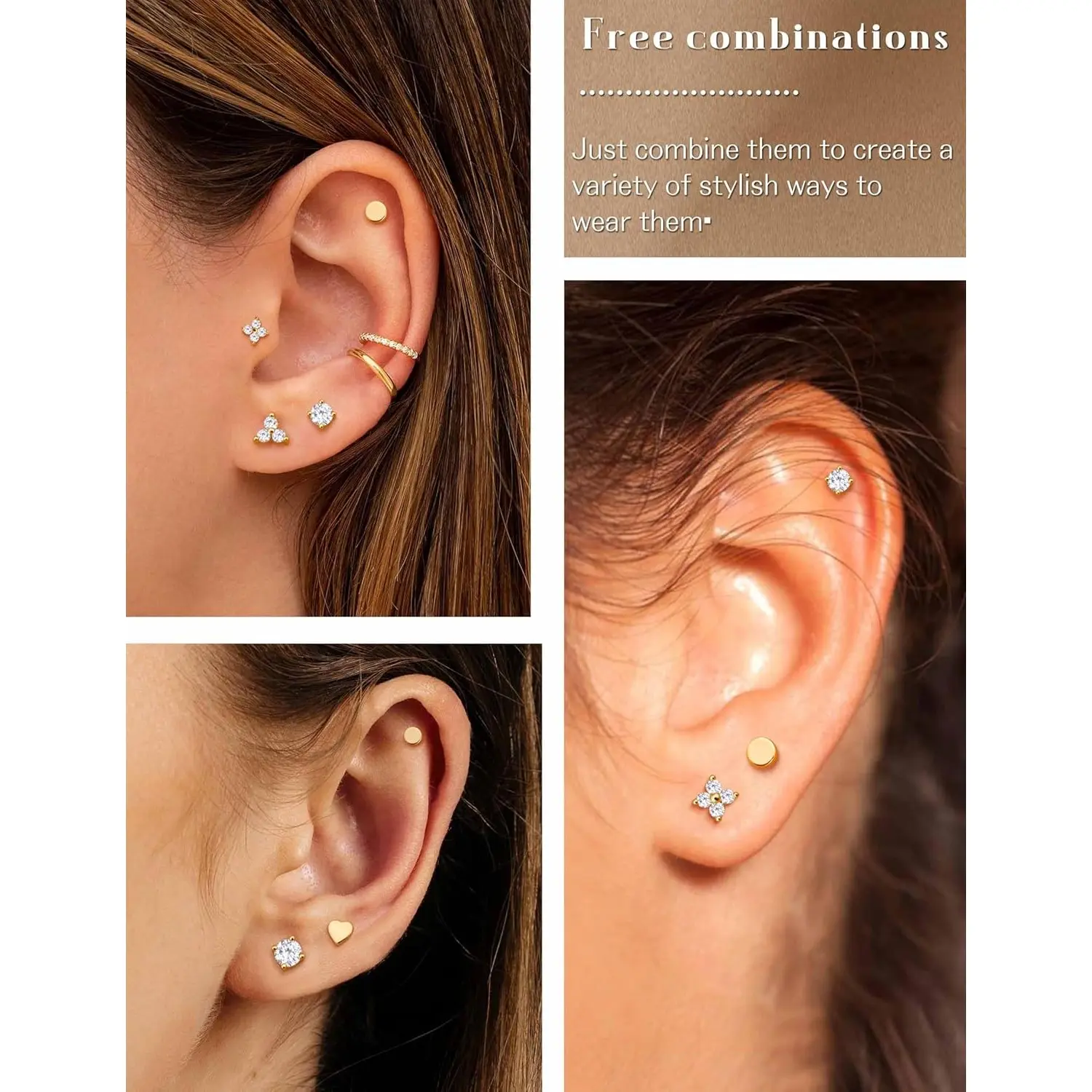 ·【Perfect Earring Sets for Multiple Piercings】 These hypoallergenic earrings for women are designed for multiple holes, including cartilage, helix, tragus, and conch. With their versatile design, these gold stud earrings for women pair effortlessly with other gold jewelry for a personalized look. Whether you're wearing them as stud earrings or stacking them, they fit perfectly into your daily routine—ideal for multiple piercing styles.