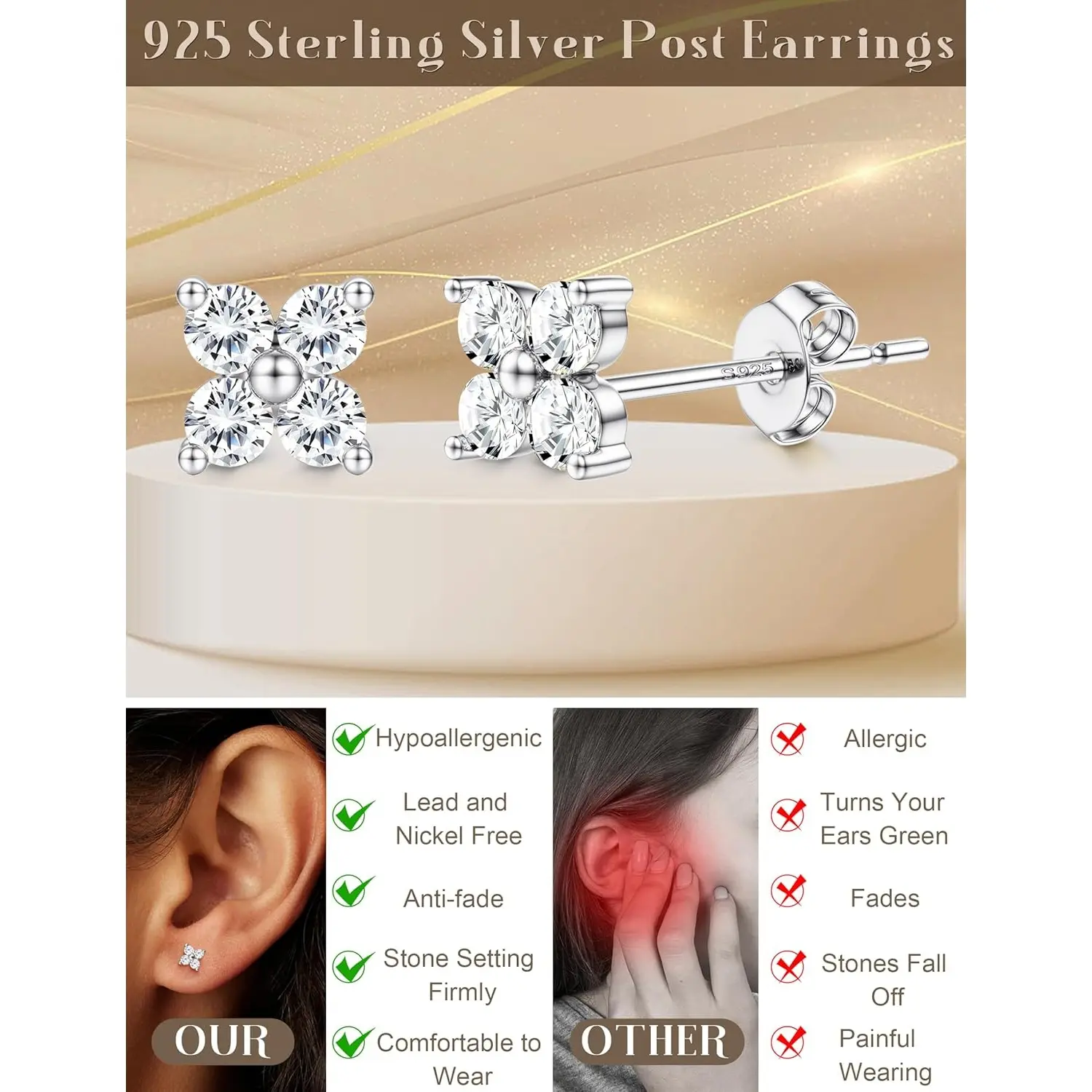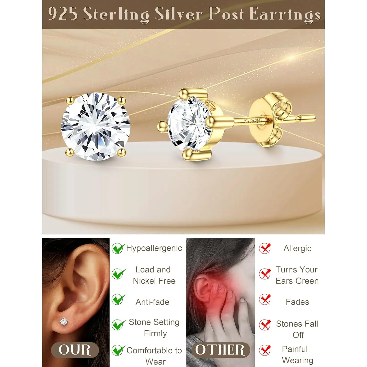 ·【Sterling Silver Stud Earrings – Hypoallergenic & Safe for Sensitive Ears】 Our 14k Plated gold plated earrings are made with 925 sterling silver post and hypoallergenic materials to ensure a comfortable, irritation-free experience. These gold studs earrings for women are lead free and nickel free, making them perfect for sensitive ears. With these small stud earrings for women, you no longer have to worry about allergies, offering long-lasting comfort and peace of mind.