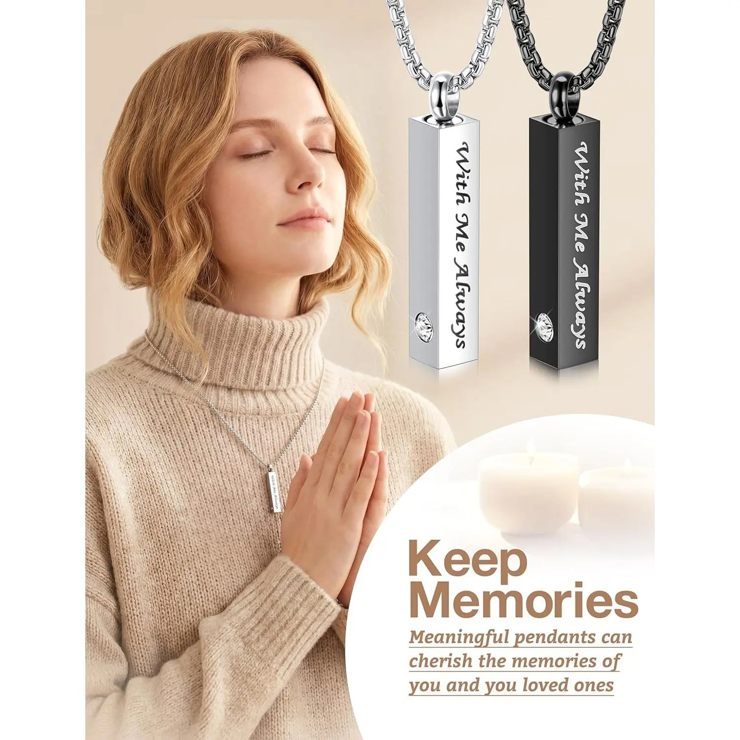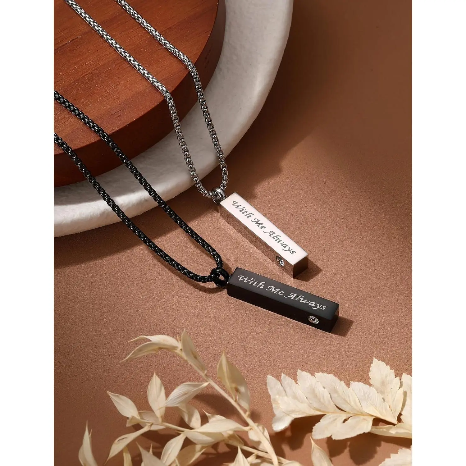 ·【MEANINGFUL GIFTS】Inspirational words "With Me Always" "Forever Loved " "In Loving Memory " "Forever In My Heart " are engraved on the surface of the necklace. This necklace sets come in boxes and are a meaningful gift for family and friends on Father's Day, Mother's Day, Thanksgiving, Christmas and more. You are always closer to his/her heart, you are always with her/him