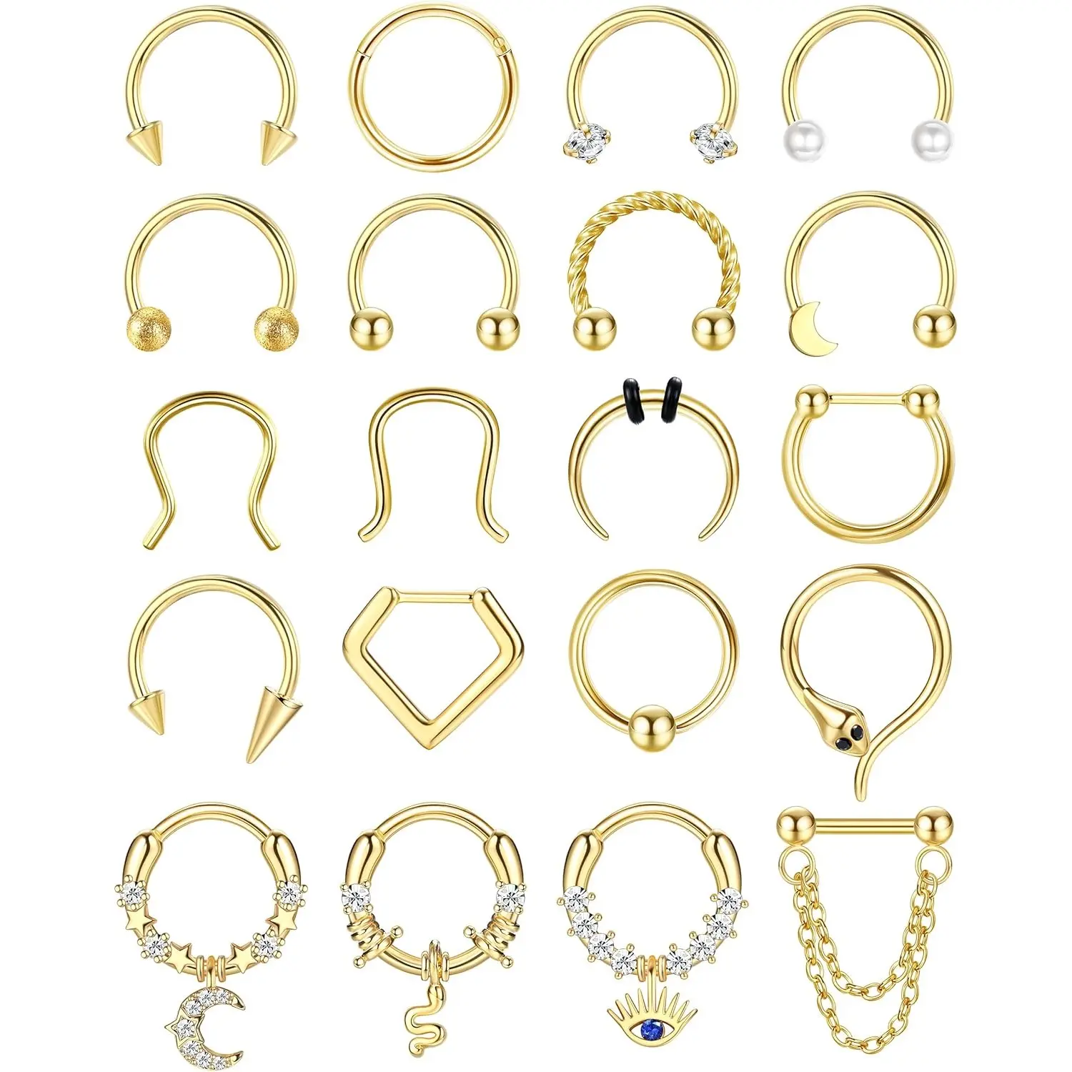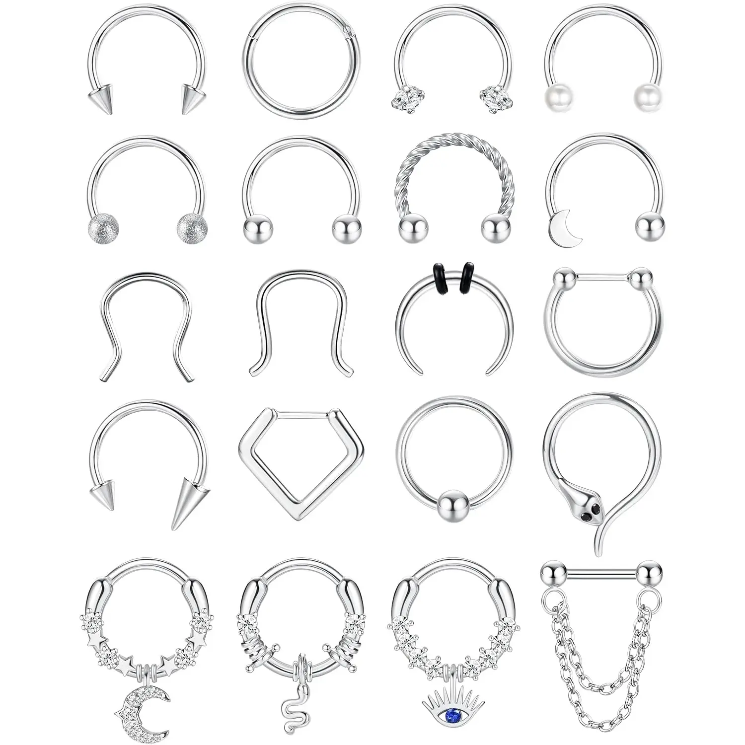·20PCS Unique Septum Rings for Versatile Styles: These 16G septum rings set includes septum rings, dangle septum clickers, and daith piercing jewelry, offering a mix of cute septum rings to match any look
