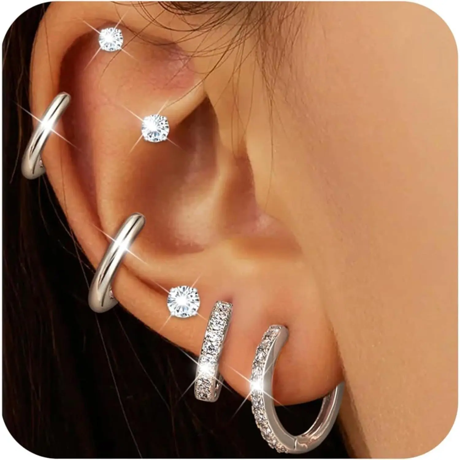 ·【 7 PAIRS of EARRING SETS】 This earring set includes 2 pairs of huggie hoop earrings, 2 pairs of cubic zirconia hoop earrings, and 3 pairs of cubic zirconia stud earrings for women. Cartilage Earrings can be worn individually or in combination, not only suitable for daily wear, but also can be paired with other earrings for different occasions.