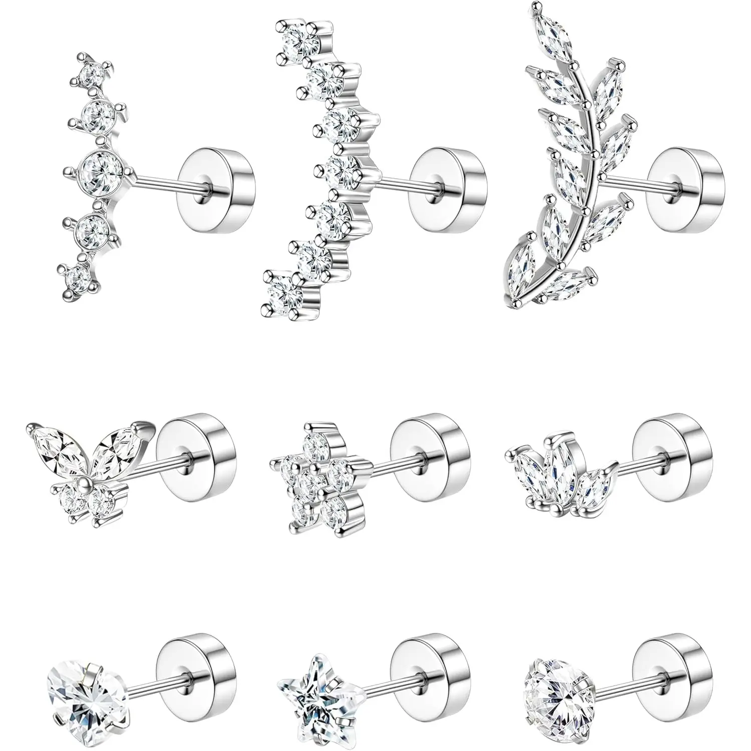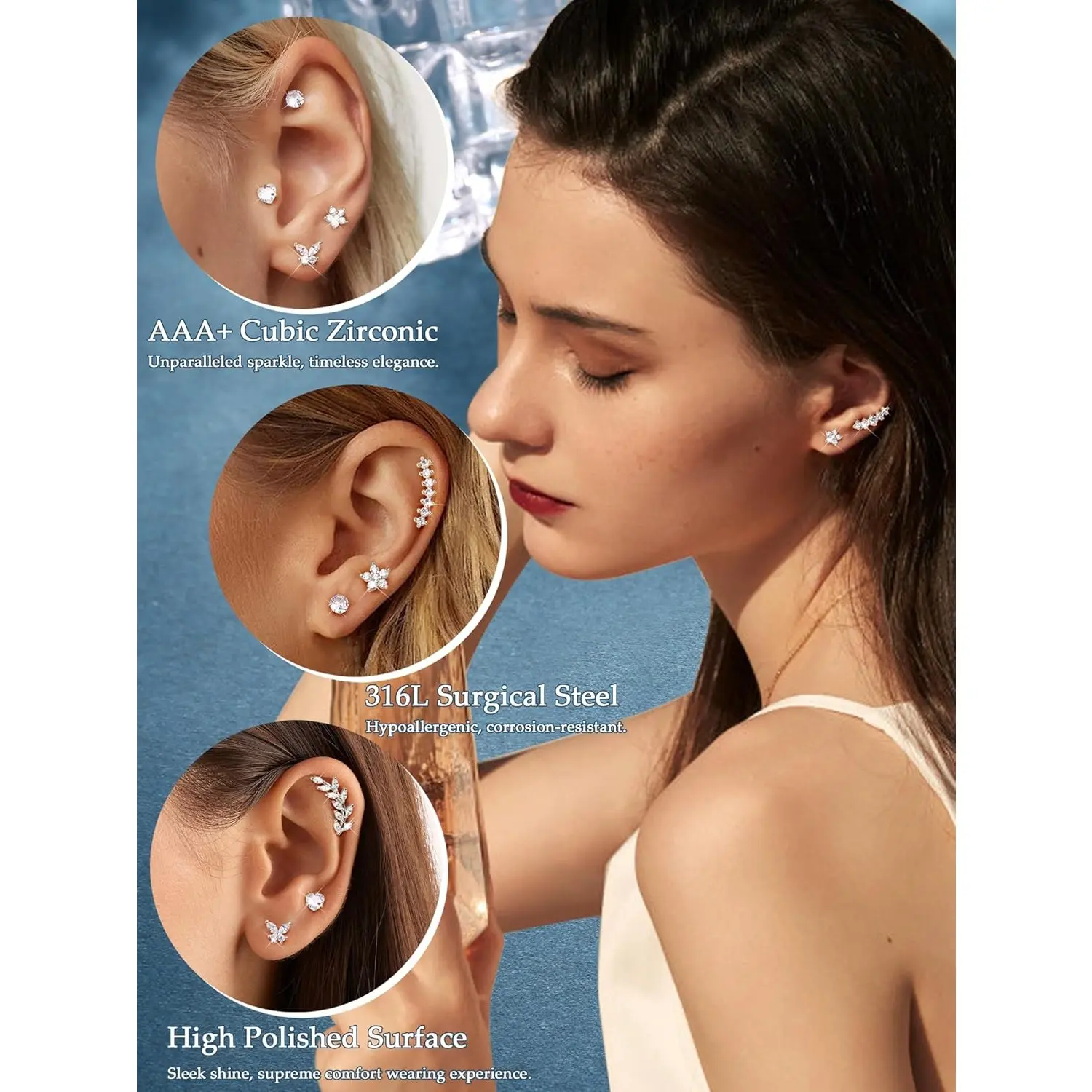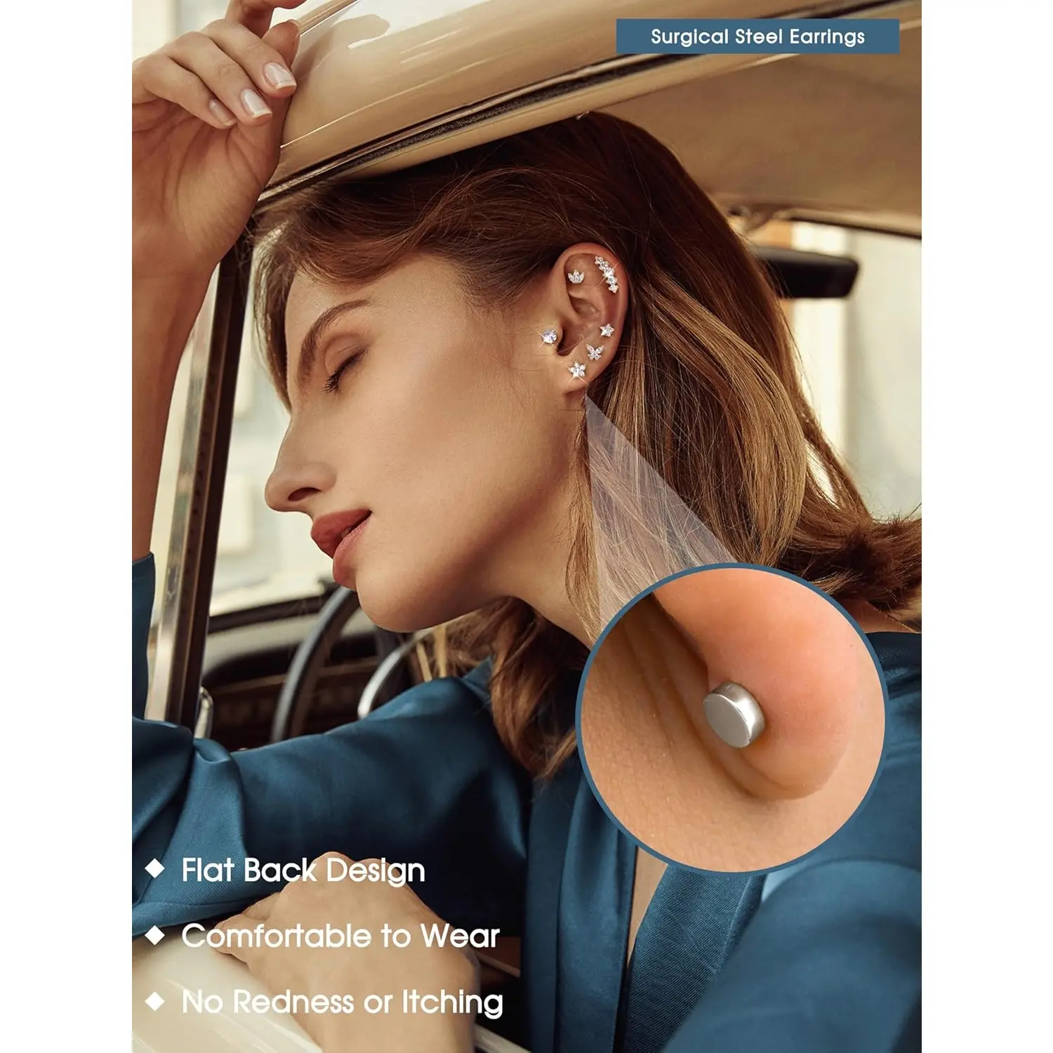 ·Helix Piercing Jewelry:A Set Of 8 Pcs Cartilage Earrings For Women.Leaf Conch Earrings,Flower Helix Earrings,Opal Cartilage Piercing,Cz Flat Back Earrings.Sparkling Surface Catch Eyes In The Crowd. More Choice For Daily Wearing Or Dress Up