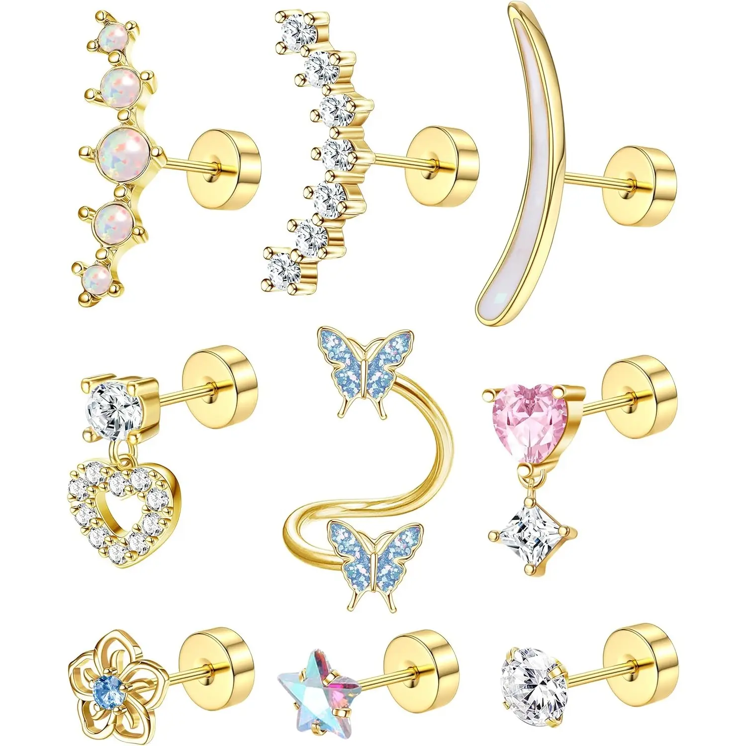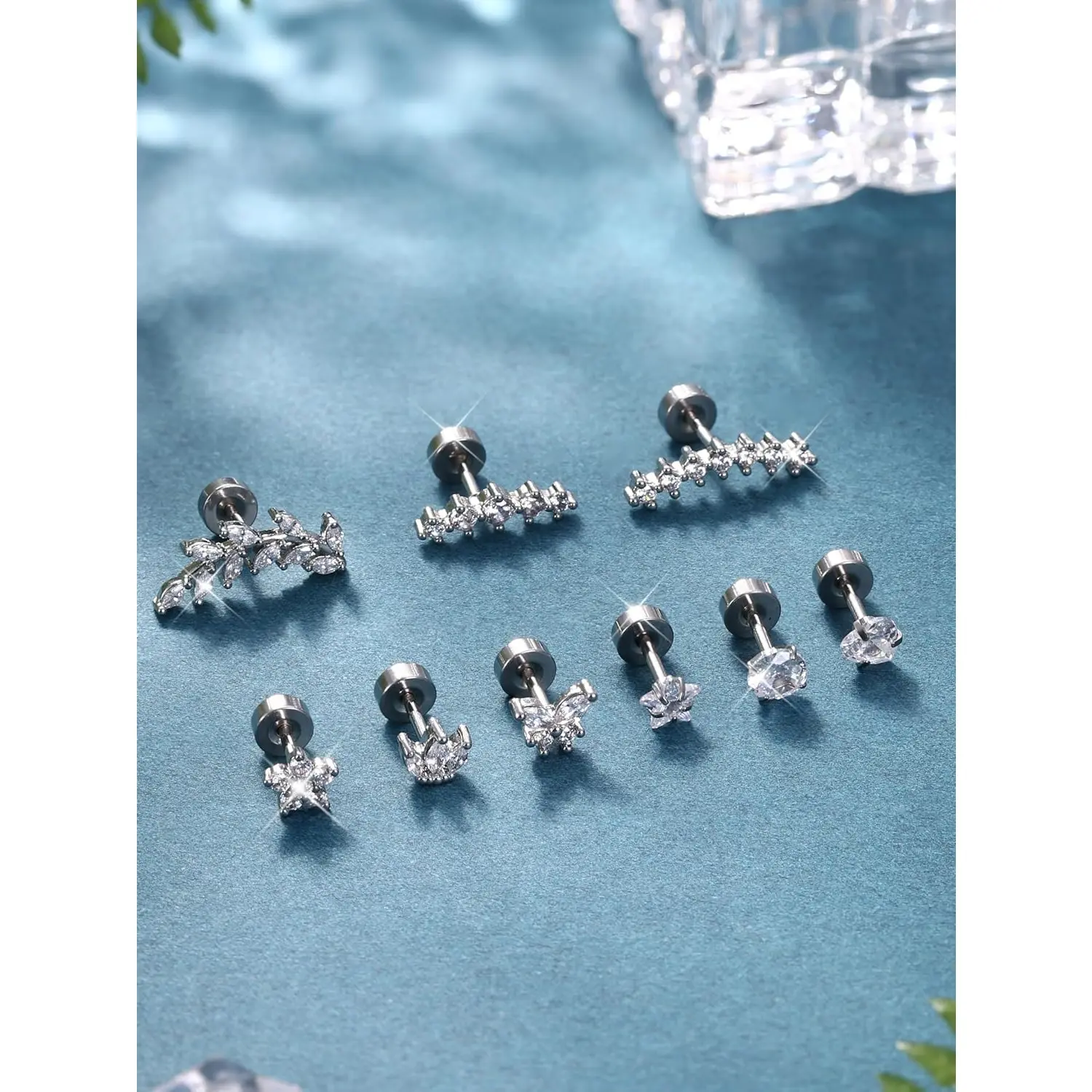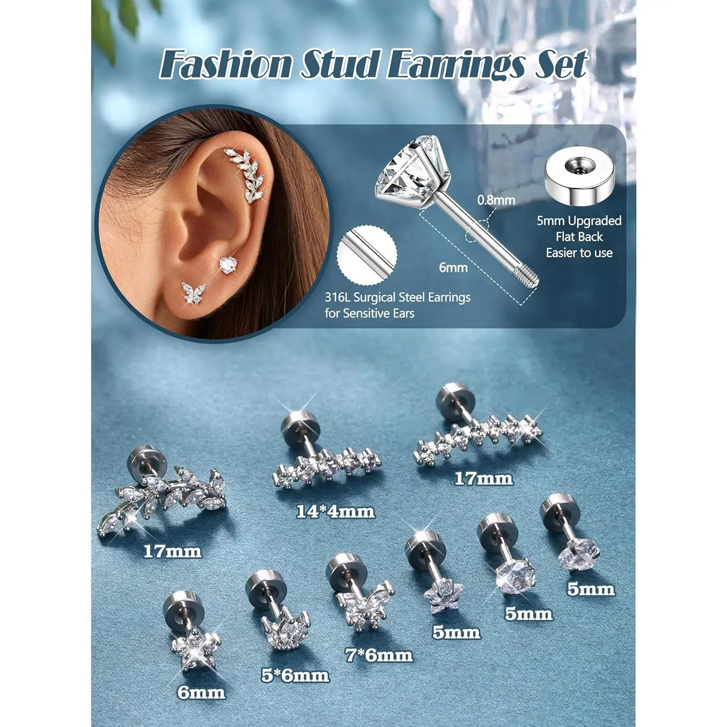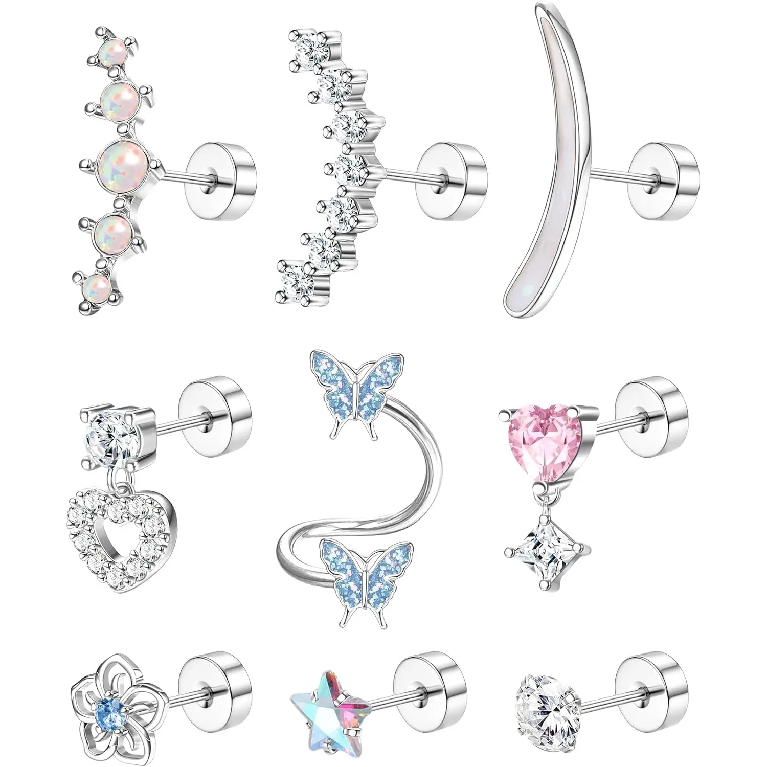·Helix Piercing Jewelry:A Set Of 8 Pcs Cartilage Earrings For Women.Leaf Conch Earrings,Flower Helix Earrings,Opal Cartilage Piercing,Cz Flat Back Earrings.Sparkling Surface Catch Eyes In The Crowd. More Choice For Daily Wearing Or Dress Up