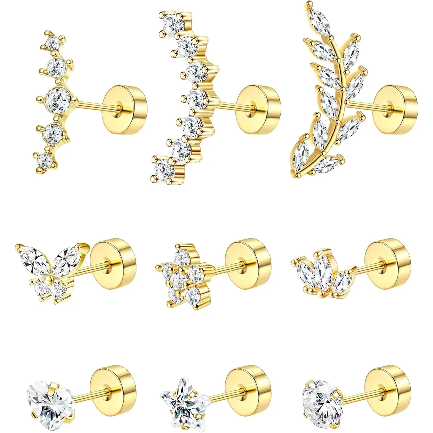 ·Cartilage Earring Material:Flat Back Earrings Are Made Of Premium Genuine 316l Surgical Stainless Steel For Sensitive Ears. No Allergy, No Irritation, No Nickel And Lead. Upgraded Vacuum Plated With 14k Gold, Long Lasting Color Retention, No Rust & No Tarnish Hypoallergenic Screw Earrings For Women