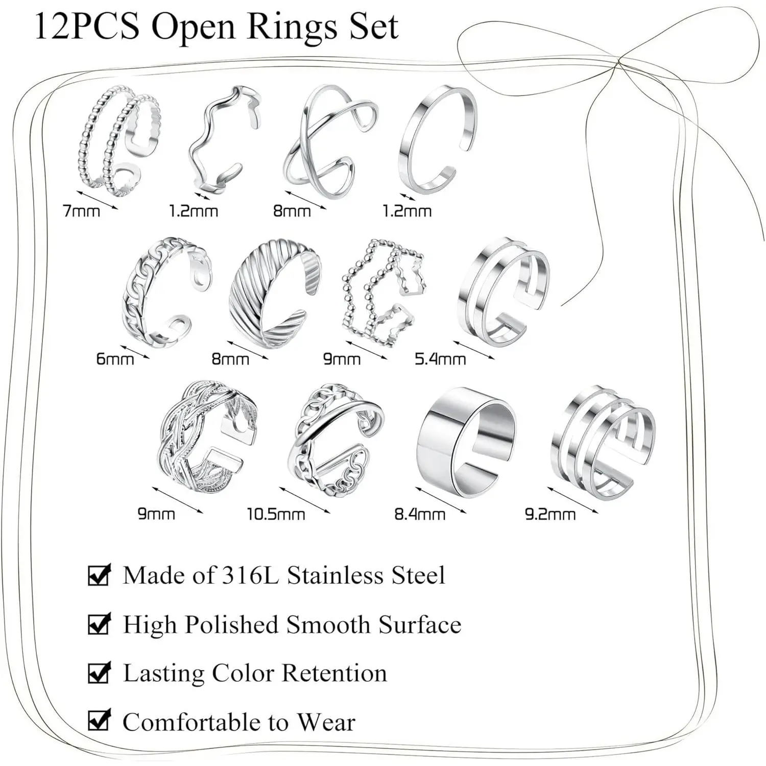 ·【Multi-size Stackable Rings】A set with several different sizes of knuckle rings, these stacking rings are sized between 5-10, the open rings are slightly adjustable and can be stacked to be worn in different positions on different fingers, these stainless steel rings suitable for most women men to wear.