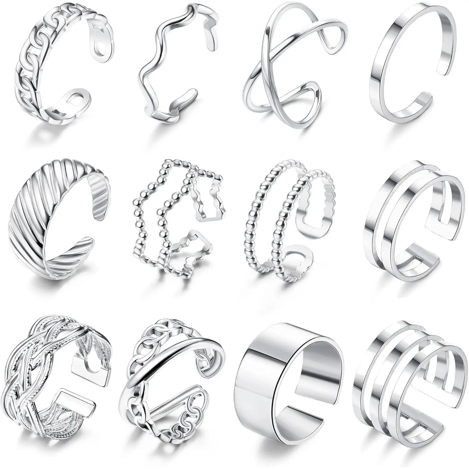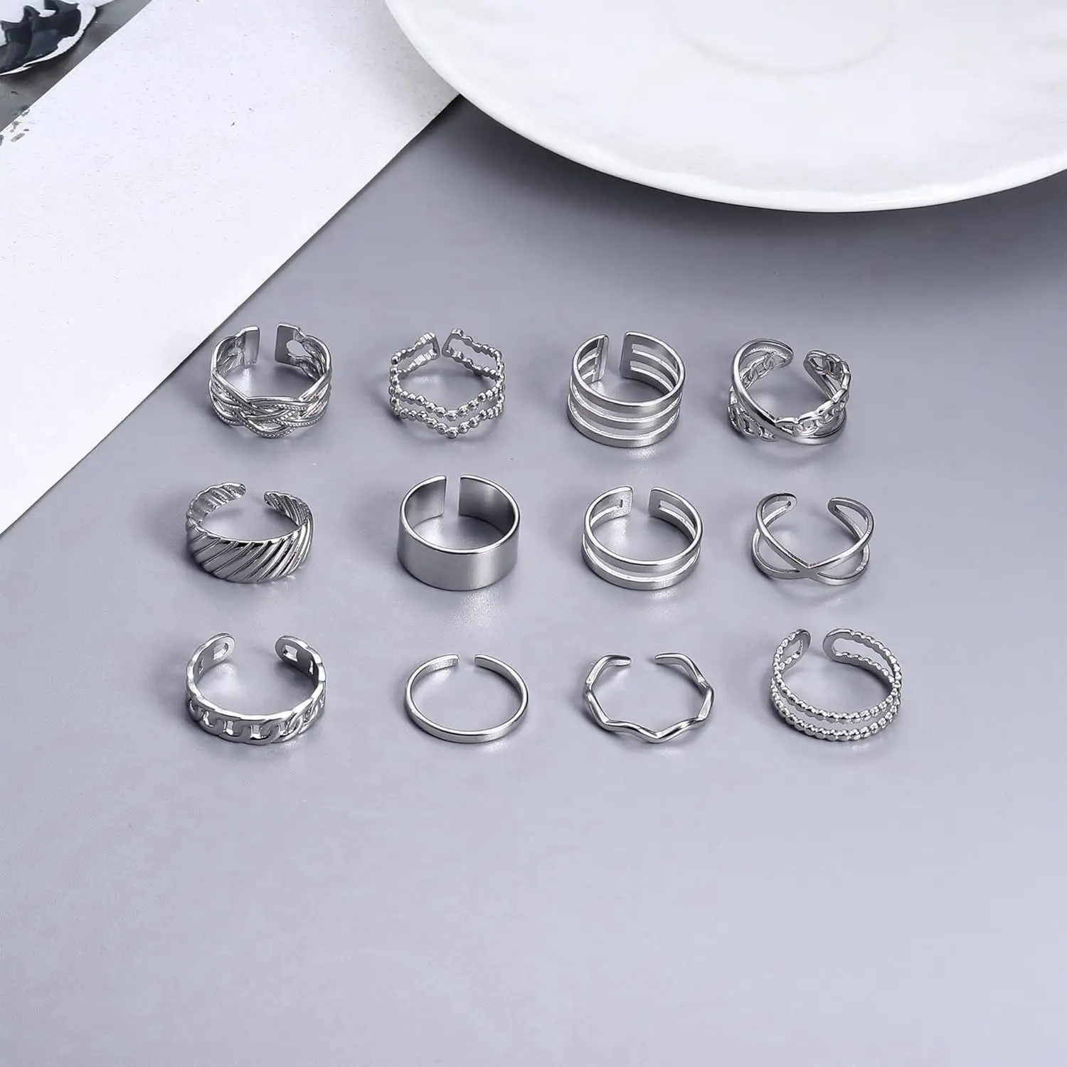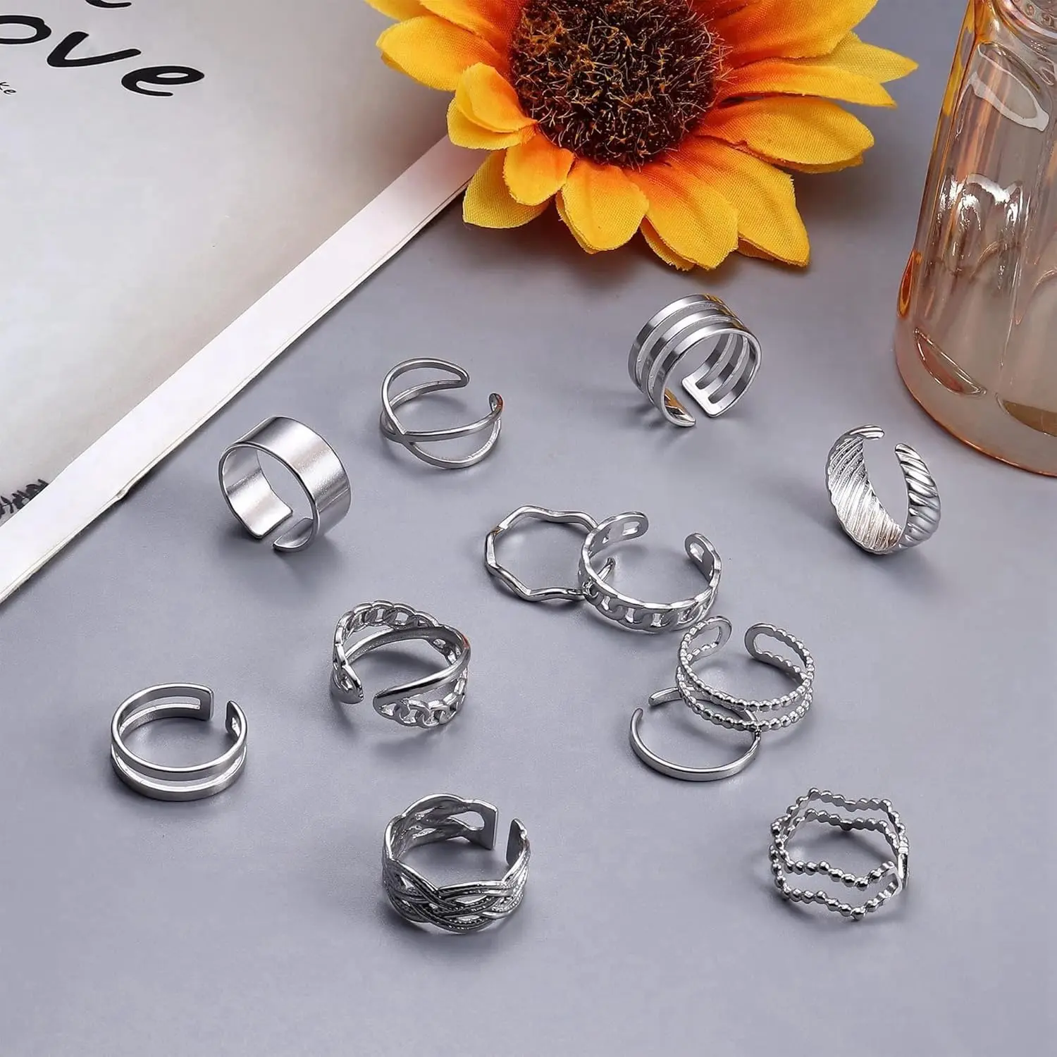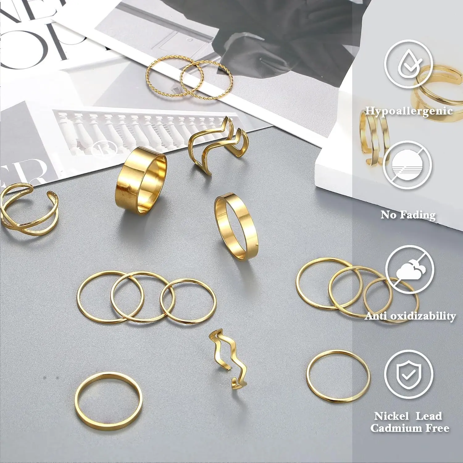 ·【Knuckle Rings Set】One order includes 12/17pcs knuckle rings, such as adjustable open rings, wave rings, band rings, simple thin rings, etc., silver and gold colors available, can be used as stacking ring, knuckle ring, finger ring, toe ring, midi ring.