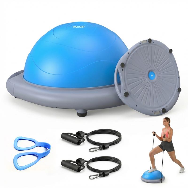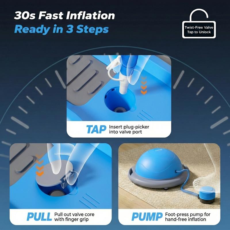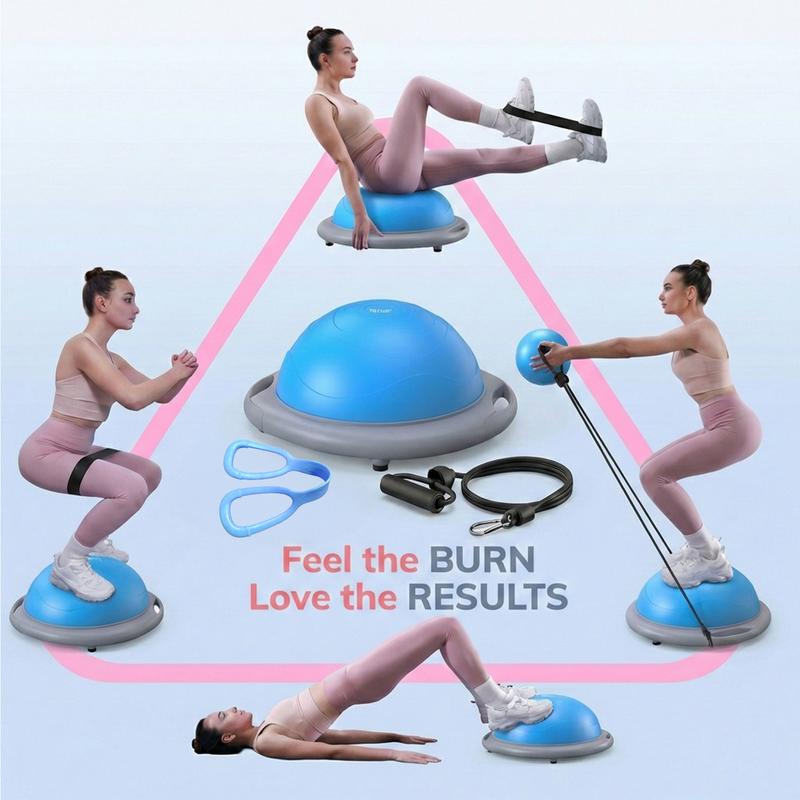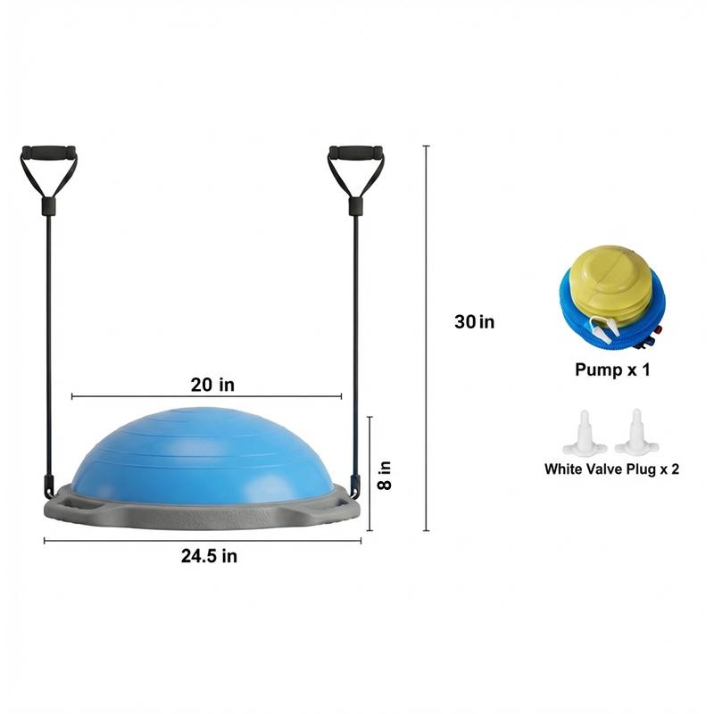 BALL PUMP INCLUDED: A complete combo, this half-dome stability ball comes with a complimentary foot pump that makes it easy to get fully inflated to 8” in under 5 minutes. The ball’s high-quality air valve prevents air leakage and extends service life
