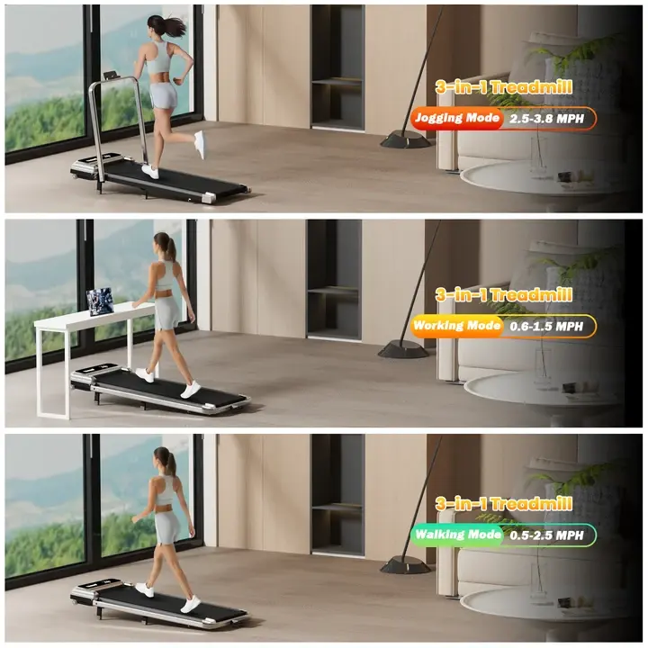 ·Take Your Workout Indoors with Ease Say goodbye to bad weather and hello to convenient home fitness! This sleek walking pad features a max speed of 3.8 MPH, making it perfect for both light jogging and brisk walking.