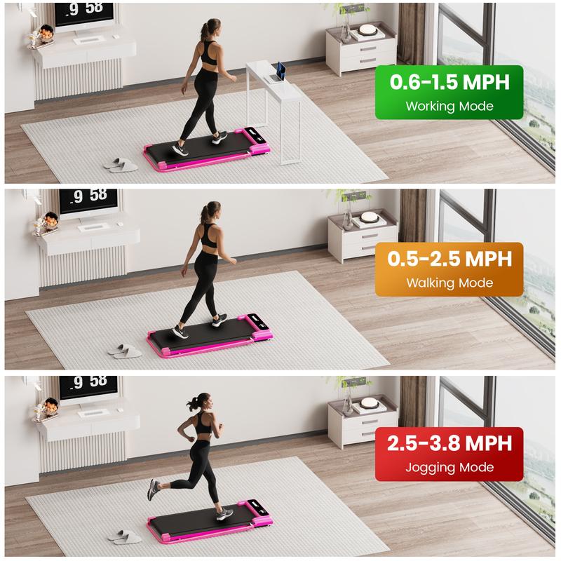 ·Take Your Workout Indoors with EaseSay goodbye to bad weather and hello to convenient home fitness! This sleek walking pad features a max speed of 3.8 MPH, making it perfect for both light jogging and brisk walking.