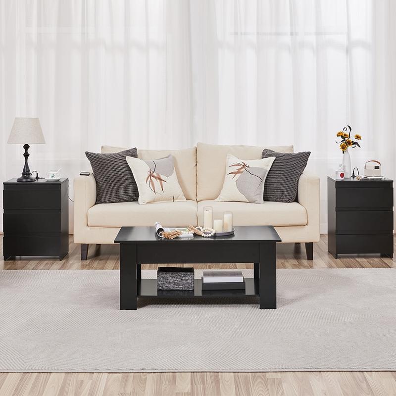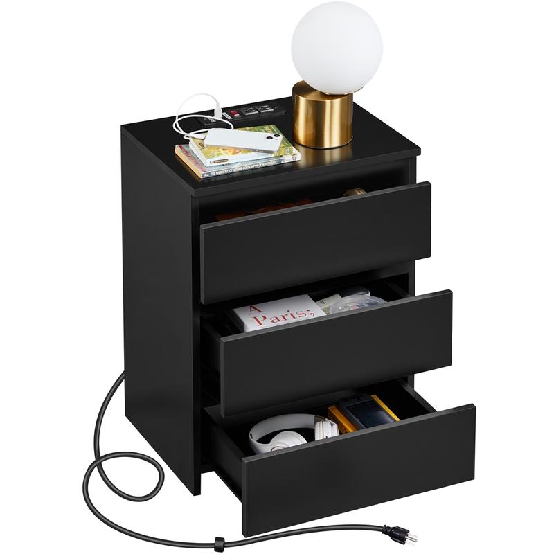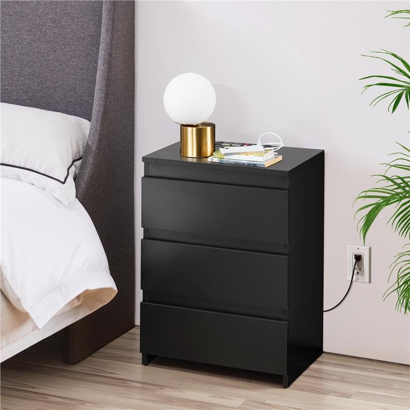 Make your living place neat and efficient with this 3-drawer nightstand. This bedside table is made of selected CARB P2 MDF boards, which ensures a long life span. With clean lines and a non-handle design, our tall bedside table will easily match your home outfit style. 2 power outlets & 2 USB charging ports with a 6.5 ft long, double-isolated rounded cord and an overcurrent protection switch satisfy your daily charging needs with convenience and safety. Standing at 24″ high, this storage is an ideal addition to living rooms, bedrooms, hallways, home offices and more.