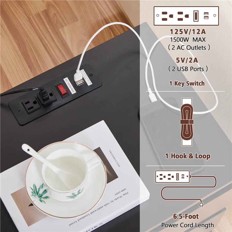 3.Handy & Safe Charging Station: This 3-drawer bedside table comes with two 3-prong outlets and 2 USB ports on the top, which allows you to browse your social feeds while sitting at your favorite lounging stations without worrying about battery drain. The ETL-listed power outlets with overcurrent protection and 6.5′ double-insulated power cord ensure safe and long-term usage