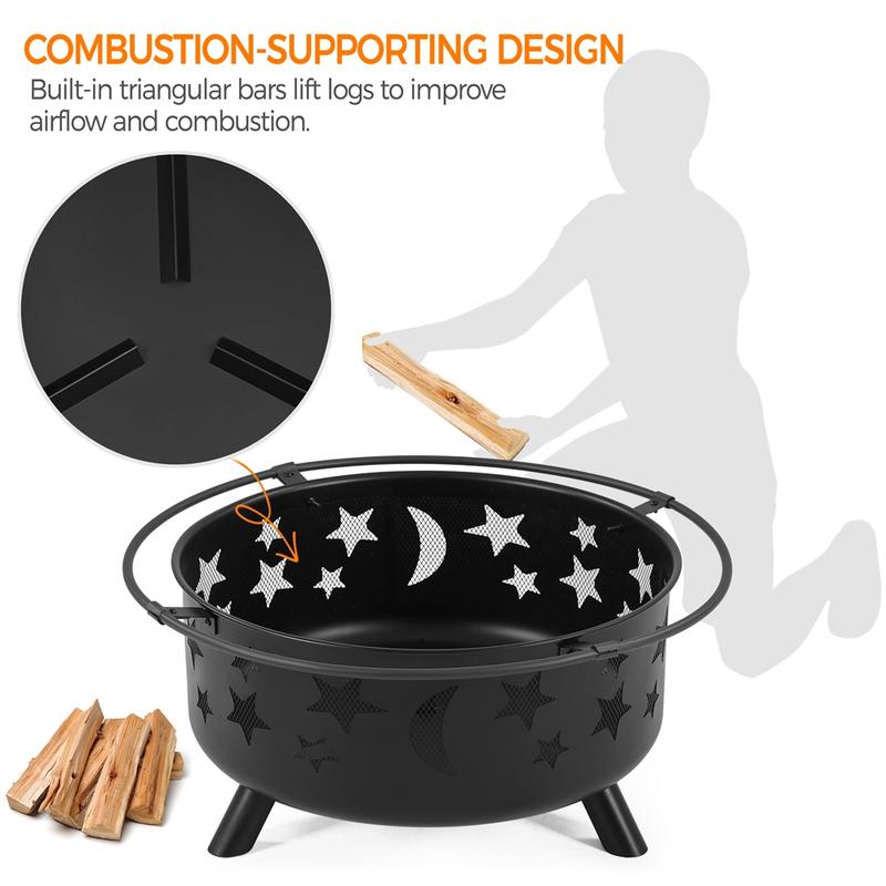5.【Outer Ring Adds More Convenience & Safety】The ring around this round fire pit serves as a handle, making it easy to move around the yards/patios/porches. The outer ring also prevents users from accidentally touching the scalding fire bowl