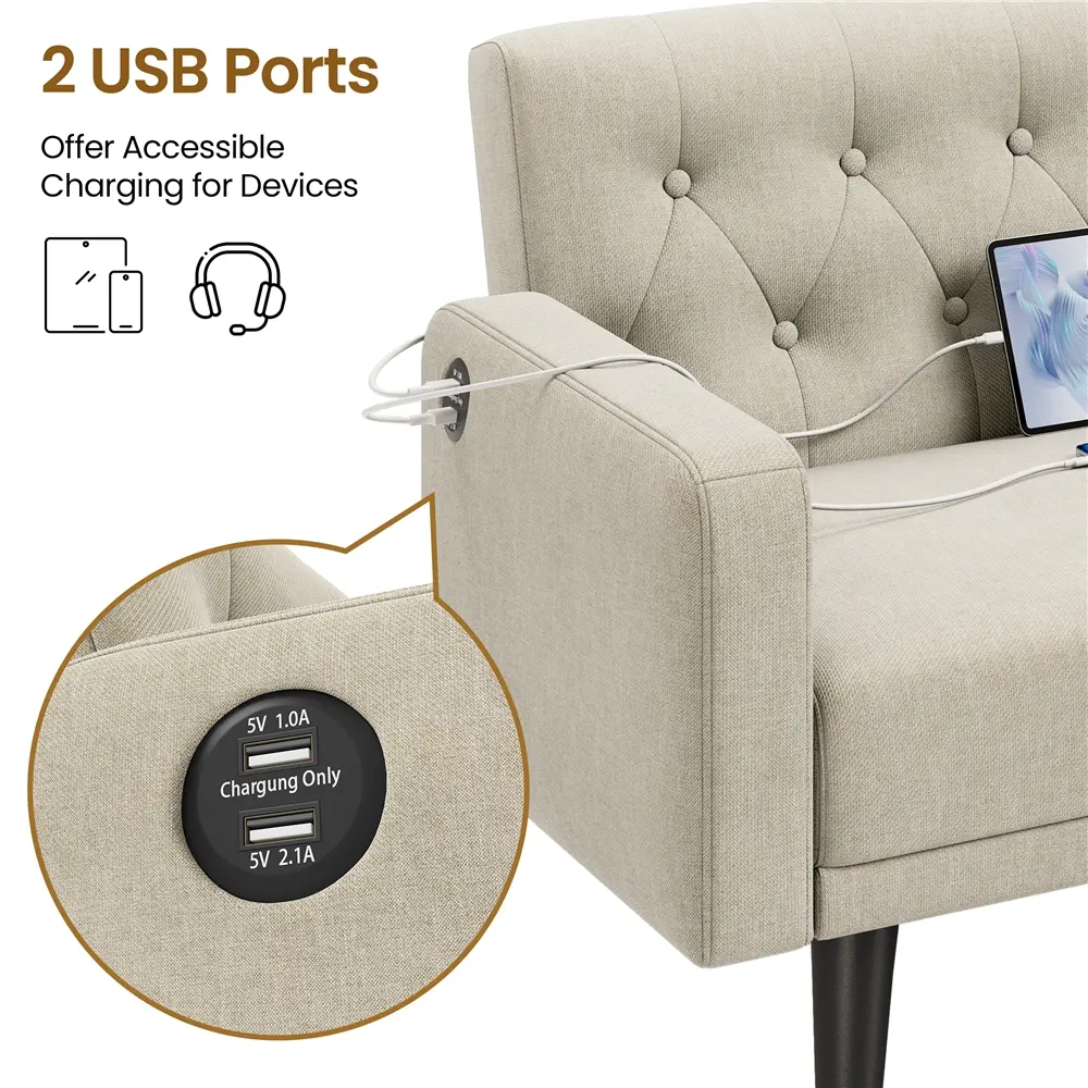 7.Convenient USB Charging: With two built-in USB-A ports, you can conveniently charge your devices while lounging on this living room couch, making it easy to stay connected and relaxed