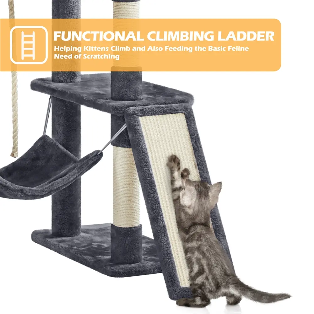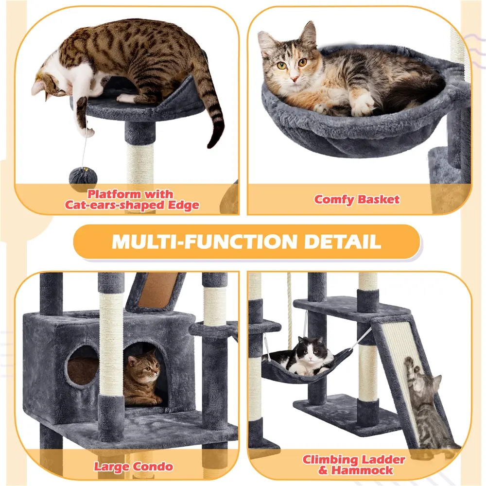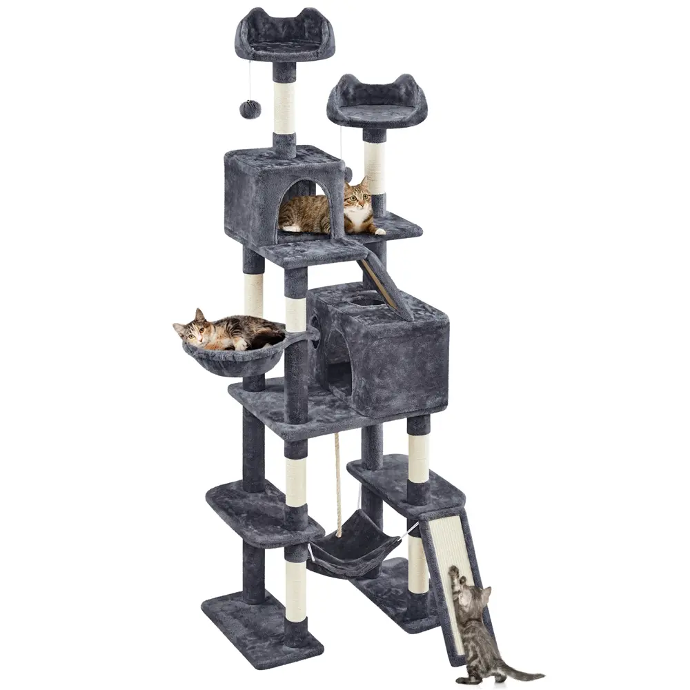 3.Ideal Household: 82.5'' multi-level mansion with 2 top perches, 2 condos, hammock, basket and ladder gives every cat its own zone.