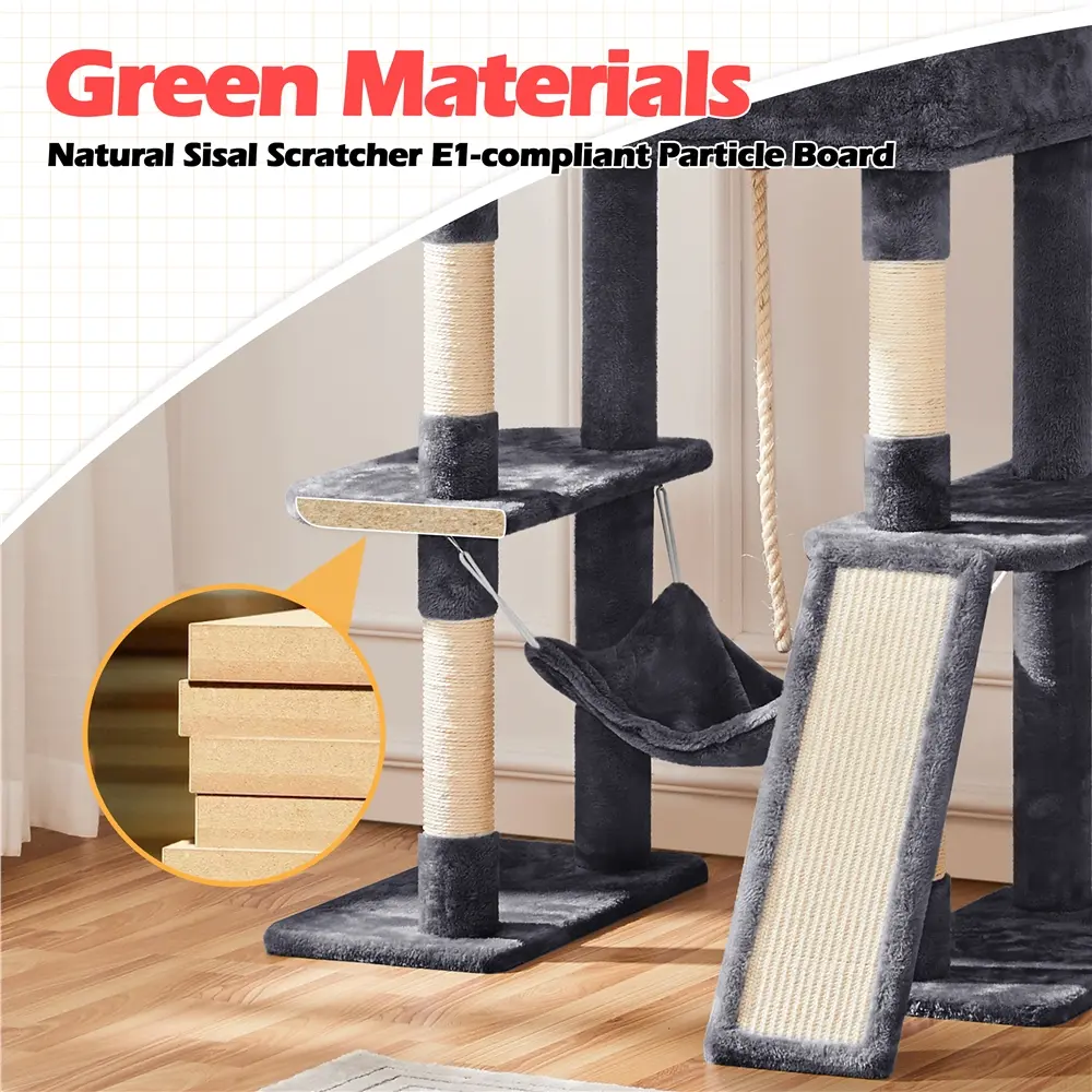 5.Pet-Friendly Material: CARB P2-compliant boards, plush, natural sisal and iron create a safe, comfy and durable environment.