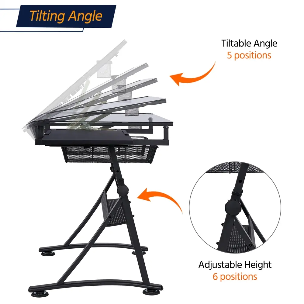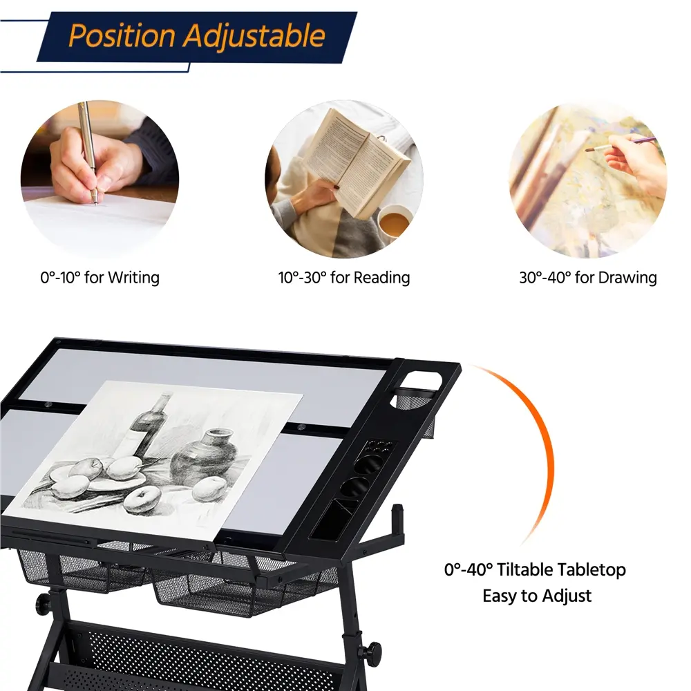 ·Adjustable Tabletop Angle: 0-60°