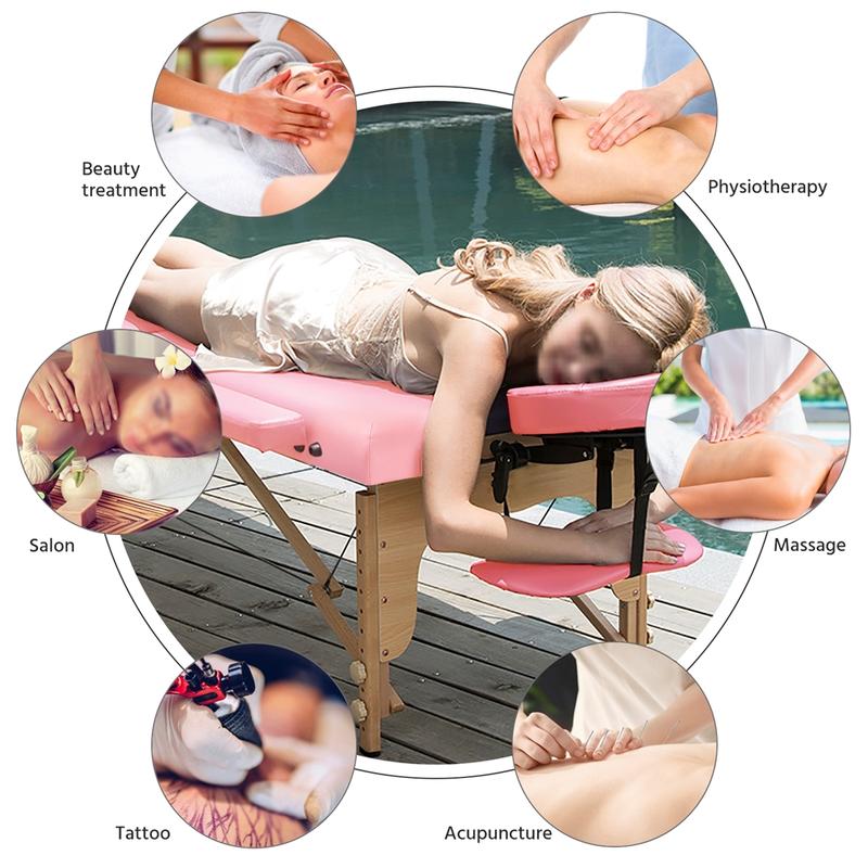 Calm yourself down and simply relax! This wooden adjustable massage bed gives you a skin-friendly and comfortable massage experience. No matter you want it for home use or professional therapists, this portable spa couch can meet your requirements. The folding facial beauty bed is made of beech wood with soft cushion and supported by composite boards and aluminium alloy frames. Also, the installation of the massage table is toolless, and all you need to do is to open the case and let bed legs out to the place. This folding massage couch can be used for multiple purposes, home massage, spa, beauty salon, clinic, etc. Enjoy your comfortable massage in this adjustable and portable massage bed!