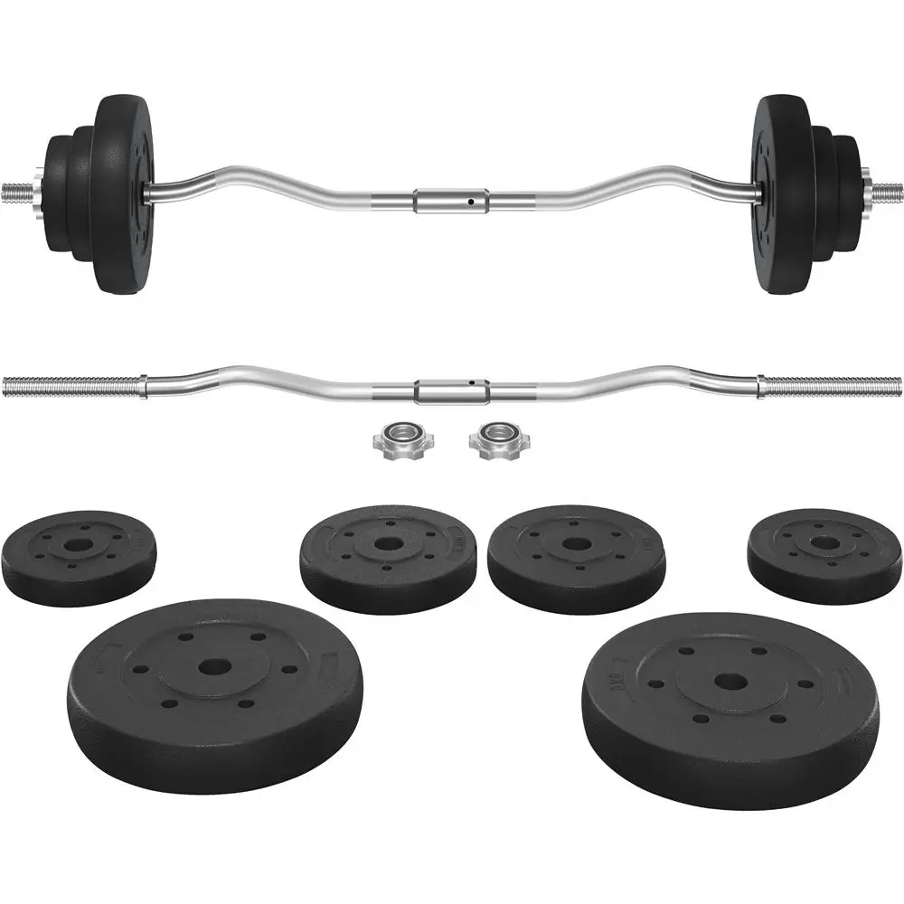1. Durable and Sturdy: The concrete-filled weight plates are encased in a robust HDPE coating for added protection, while the curl bar is crafted from solid nickel-plated iron, providing enduring strength and reliable performance