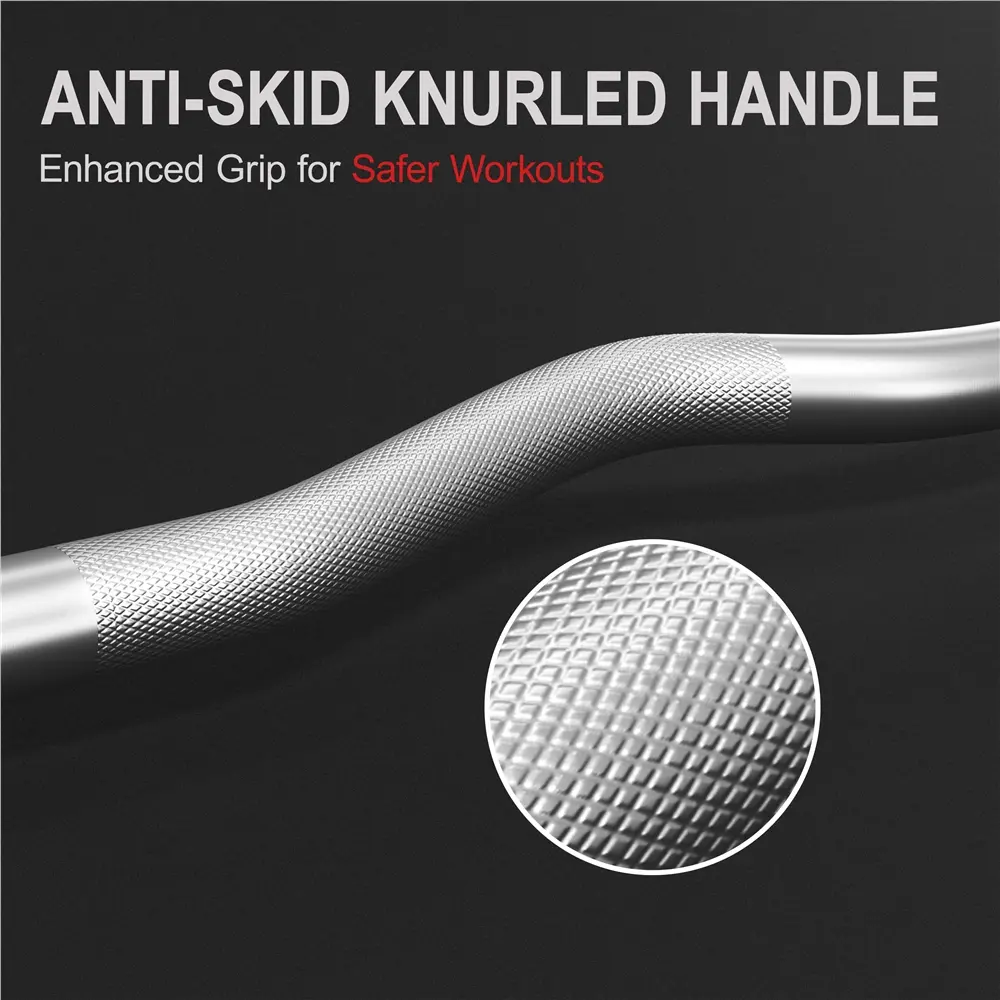 5. Ergonomic Curl Bar: The curved bar of this barbell set reduces wrist pressure and enhances comfort by aligning with your natural grip, lowering the risk of accidents during intense workouts