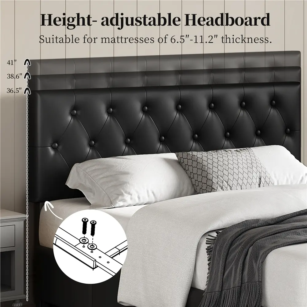 ·Adjustable Headboard Height: 36.2″, 38.6 ″, 41″