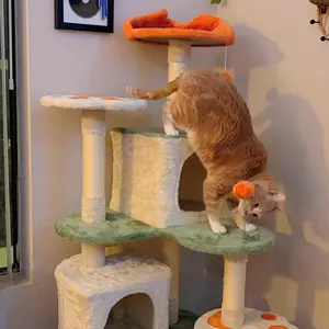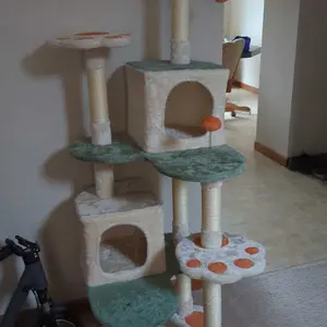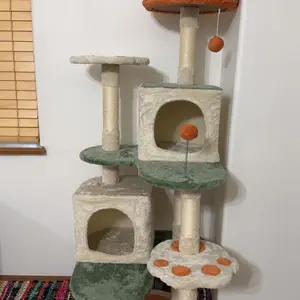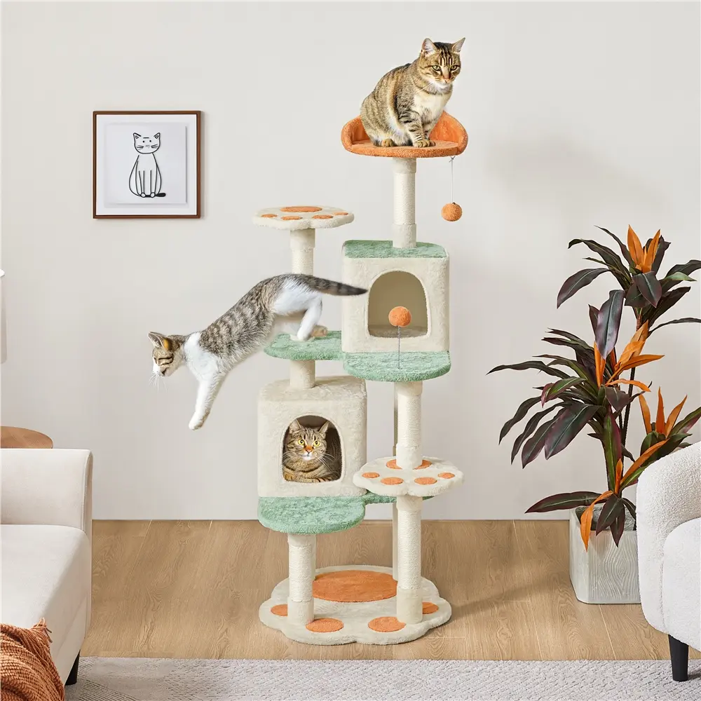 2. Multi-Level Cat Kingdom: This cat tower is crafted considering our feline friends' instincts and activity needs. Its multiple levels provide an easy and entertaining way for the cats to climb, explore the vertical space, and even help with unwanted behaviors like scratching furniture and inter-cat aggression
