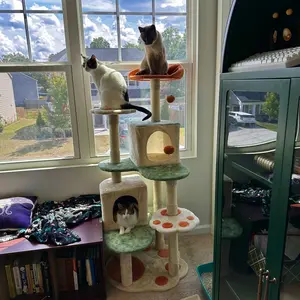 8. Suitable For Small- to Medium-sized Cats: This cat tree is designed for 2-3 small- to medium-sized cats (e.g., Siamese, Exotic Shorthair, Devon Rex, Abyssinian) weighing 10 lb and under