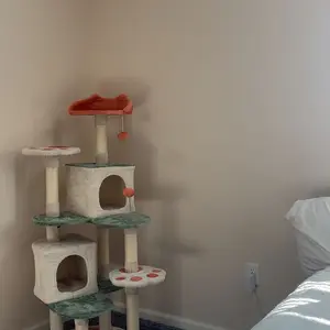 1. Pet-friendly Materials: Each tier contains CARB P2-compliant particle board construction with soft plush fabric covering; this cat tower is designed to bring a safe, sturdy, stable home and entertaining center for your little angels
