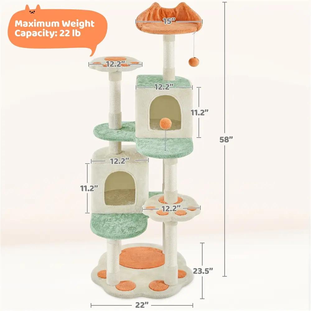 9. Easy Assembly: This cat furniture comes with everything you need for a hassle-free installation, including hardware, tools, and detailed instructions. Once assembled, it measures 24 inches in length, 22 inches in width, and 57.5 inches in height, making it ideal for 2-3 small- to medium-sized cats to climb and play