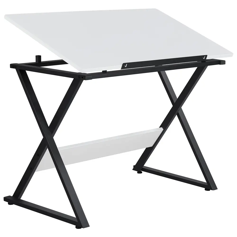 This drawing table has all the basic functionality you need for professional art designs or regular laptop work, including height/angle/pencil ledge adjustment. Constructed of powder-coated steel frame and selected MDF tabletop, this art desk is sturdy and very easy to clean. The spacious tabletop can be tilted up to 30 degrees from the horizontal. The pencil ledge features an L-shaped slot locking design so you can always slide it off when using the drafting table as a writing/computer desk.