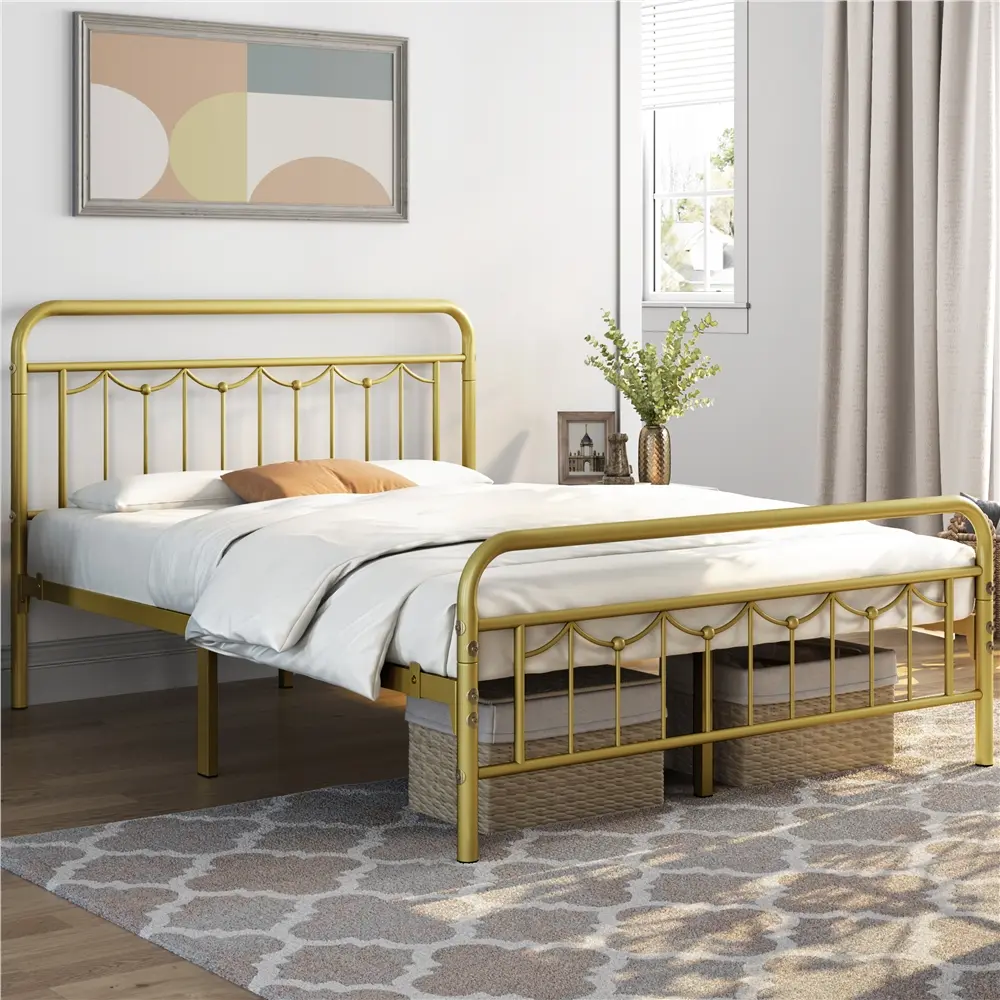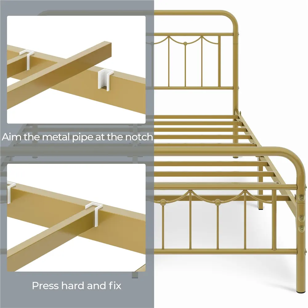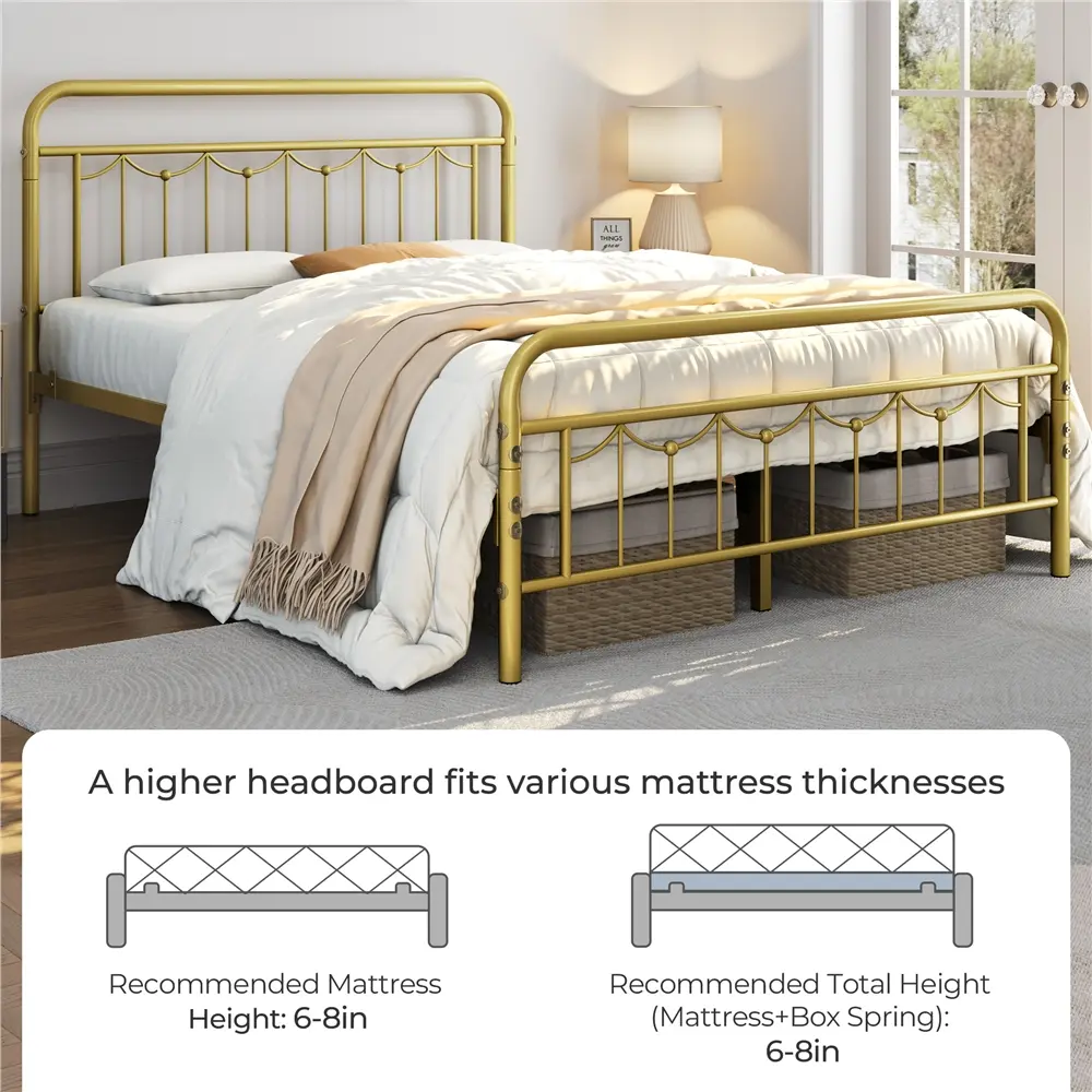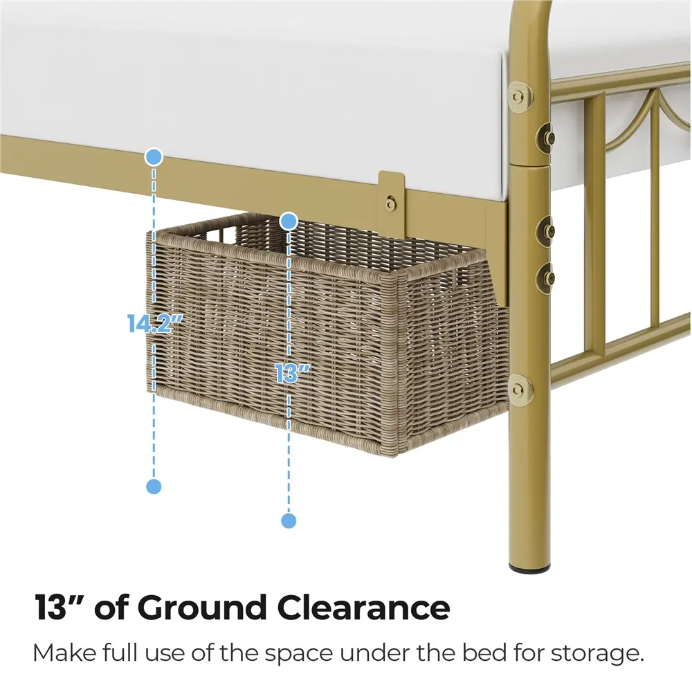 If you're moving into a new place, buying furniture for your child, or setting up a guest room, a lightweight but sturdy metal bed frame is a great choice. It provides the support you need for a good night's sleep. This metal platform bed has a charming vintage farmhouse look with elegant arches and a strong frame. The high headboard not only makes your bedroom stand out but also gives you a comfy spot to lean back with some pillows. Made from durable steel, this bed frame has strong metal legs that offer great stability for any type of mattress—no box spring needed. The anti-slip design prevents your mattress from sagging, which helps it last longer. Plus, the space under the bed is perfect for storing bags, shoes, or other items, keeping your room tidy. With everything you need to assemble the bed included, you'll be able to set it up quickly and enjoy a restful sleep in no time!