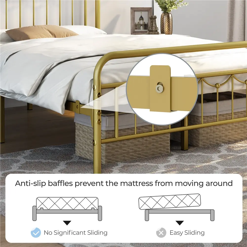 ·Size: QueenColor: Antique Gold/BlackMaterial: Steel