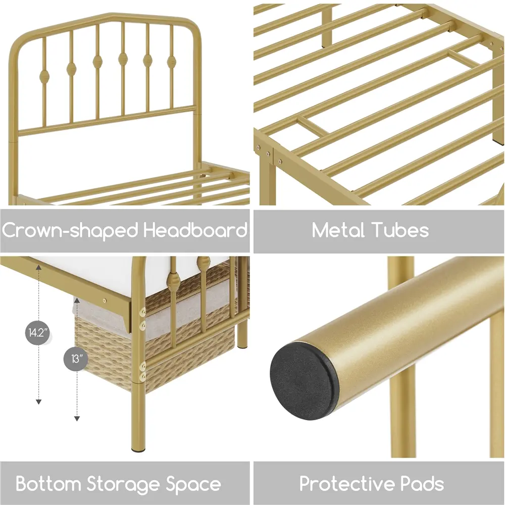 5.Dependable Foundation: This antique gold twin bed frame includes side rails, 12 metal slats and 6 support legs, with a high weight capacity of 450 lb