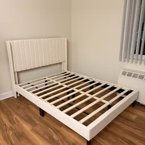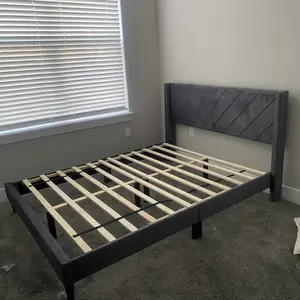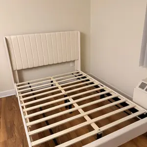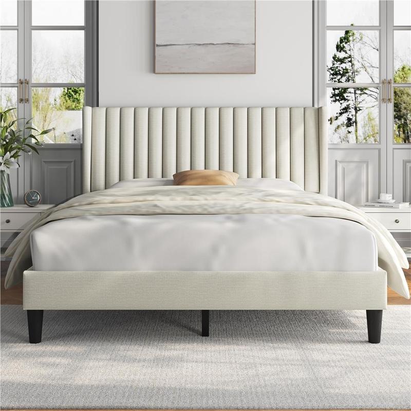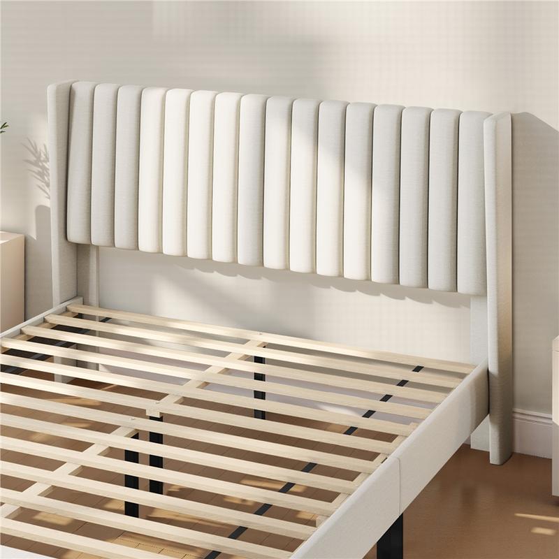 1.No Box Spring Needed: Durable wood slats are built right in to support your beloved mattress, be it latex, foam, or spring, all without the box spring. After assembling the upholstered platform bed with headboard, everything is all set