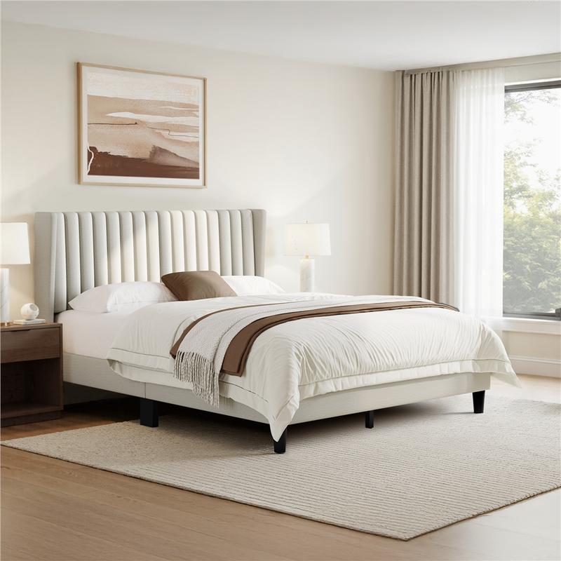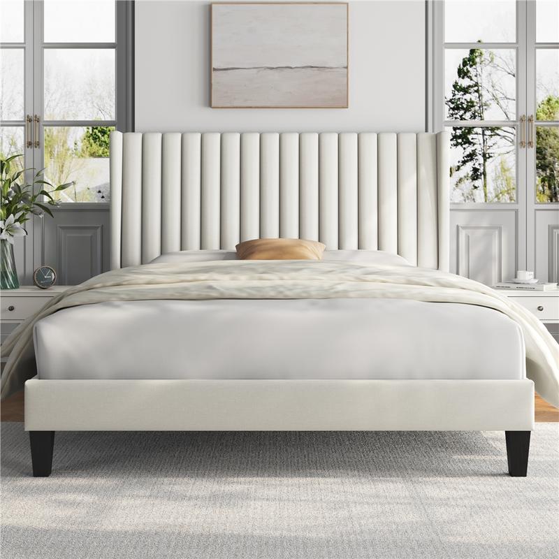 1. Ideal Choice: Clean lines and subtle curves create a modern, minimalist foundation with lifestyle-enhancing details that upgrade any space. The upholstered platform bed with wing side can be a must-have in any restful retreat