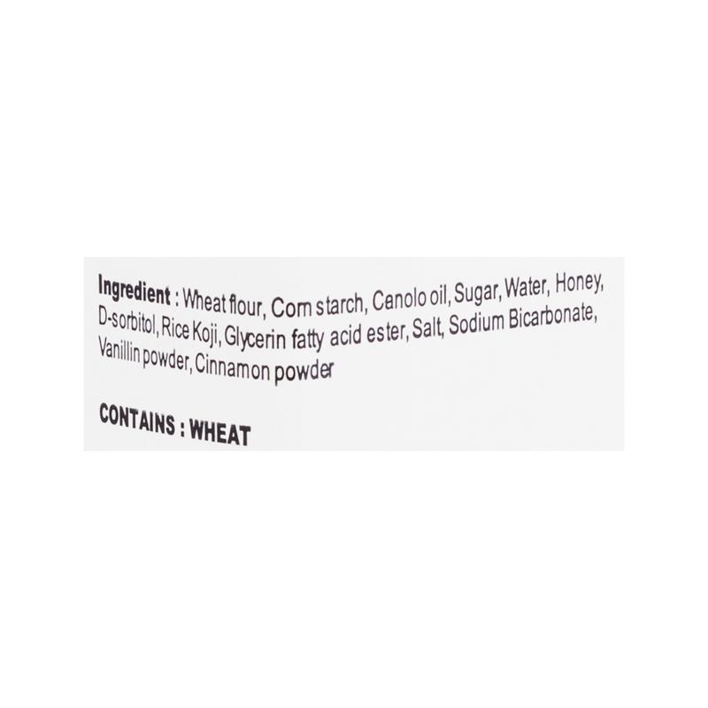 Wheat flour, corn starch, canolo oil, sugar, water, honey, d-sorbitol, rice koji, glycerin fatty acid ester, salt, sodium bicarbonate, vanillin powder, cinnamon powder