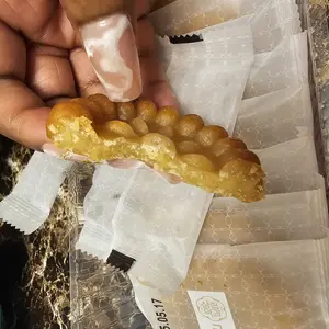 Not too sweet but still very tasty. The texture is dense and there's no crunch or syrupy texture like some traditional yakgwa might have but i think it's worth a try! Shipping took a little long but that's not a huge issue for me. Will buy again.