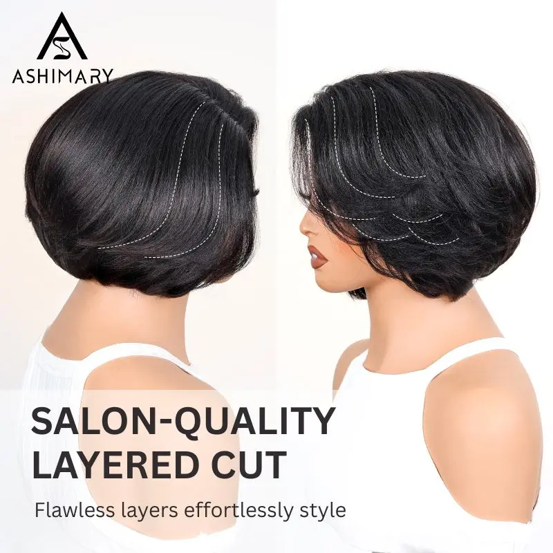 This Ashimary yaki pixie wig is perfect for any occasion! It gives a soft natural silk-press look with zero effort. Lightweight, realistic, and easy to wear