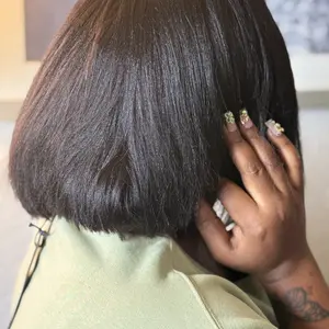This Straight bob wig Black Short Human Hair is so convenient and stylish! So soft! The lace blends well, the hair feels soft and natural, and it's super easy to wear without much effort. Perfect everyday look!