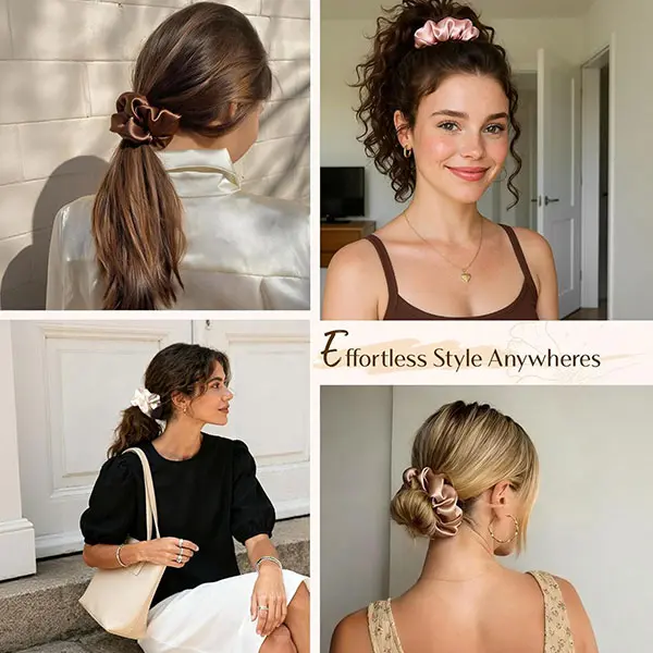·Gentle on Hair: Satin hair scrunchies are healthy for your hair texture, and unlike traditional scrunchies which can damage your hair. Our satin hair ties are soft and do not squeeze tight on the hair causing damage