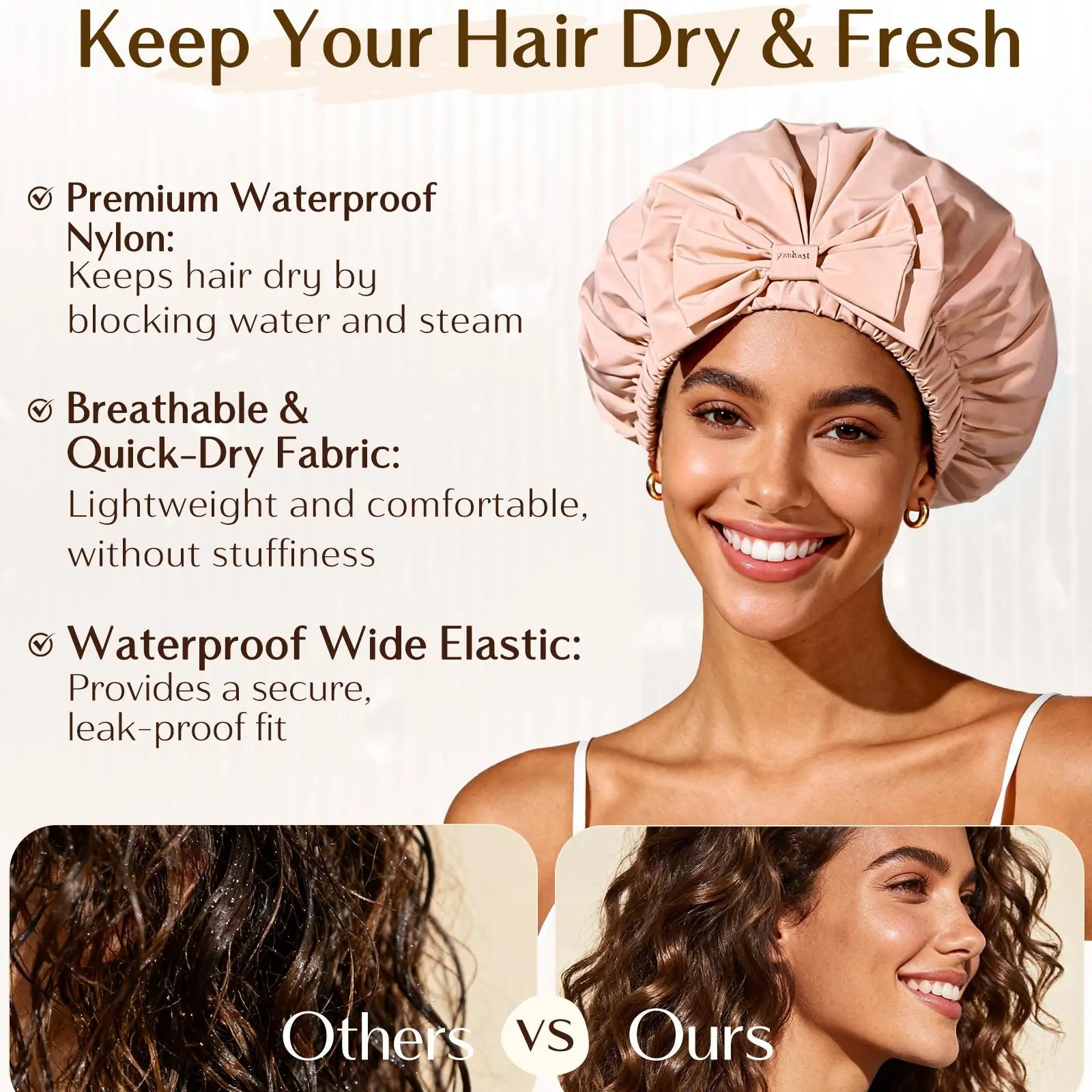 ·Reliable Waterproof Shower Cap - Fits Well & Protects Hair: This reusable and waterproof shower cap is crafted from durable nylon material, creating a reliable shield that fits well and protects hair from getting wet. Designed for daily use, it keeps your style dry while offering a secure, comfortable fit