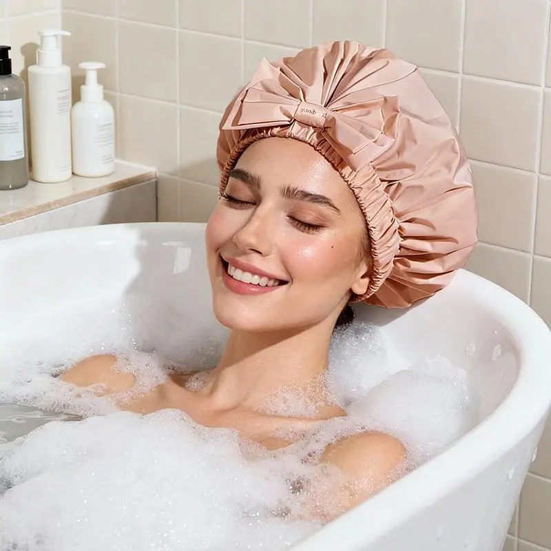 ·Soft & Comfortable Elastic Band - No Slip, No Pressure: The wide, soft elastic band on this shower cap for women is comfortable, distributing pressure without slipping. It creates a watertight seal that keeps hair fully protected from water while taking a shower