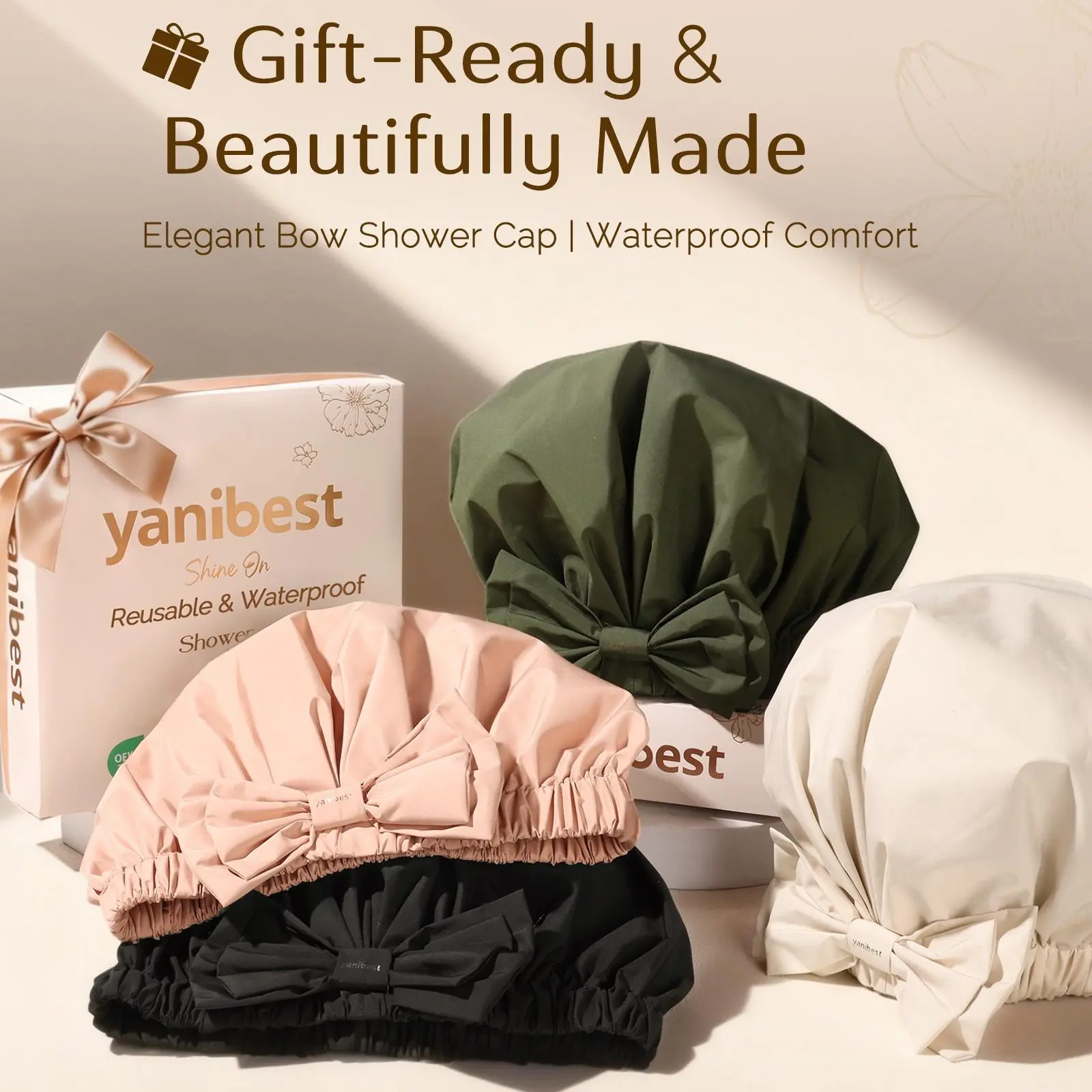 ·Adorable Bow Design & Versatile Colors: Elevate your bath time with our stylish shower hair cap with bow! Available in five colors—Classic Black, Green, Peachy Pink, Soft Beige, and Pink Floral—this reusable shower cap adds a touch of elegance to your routine