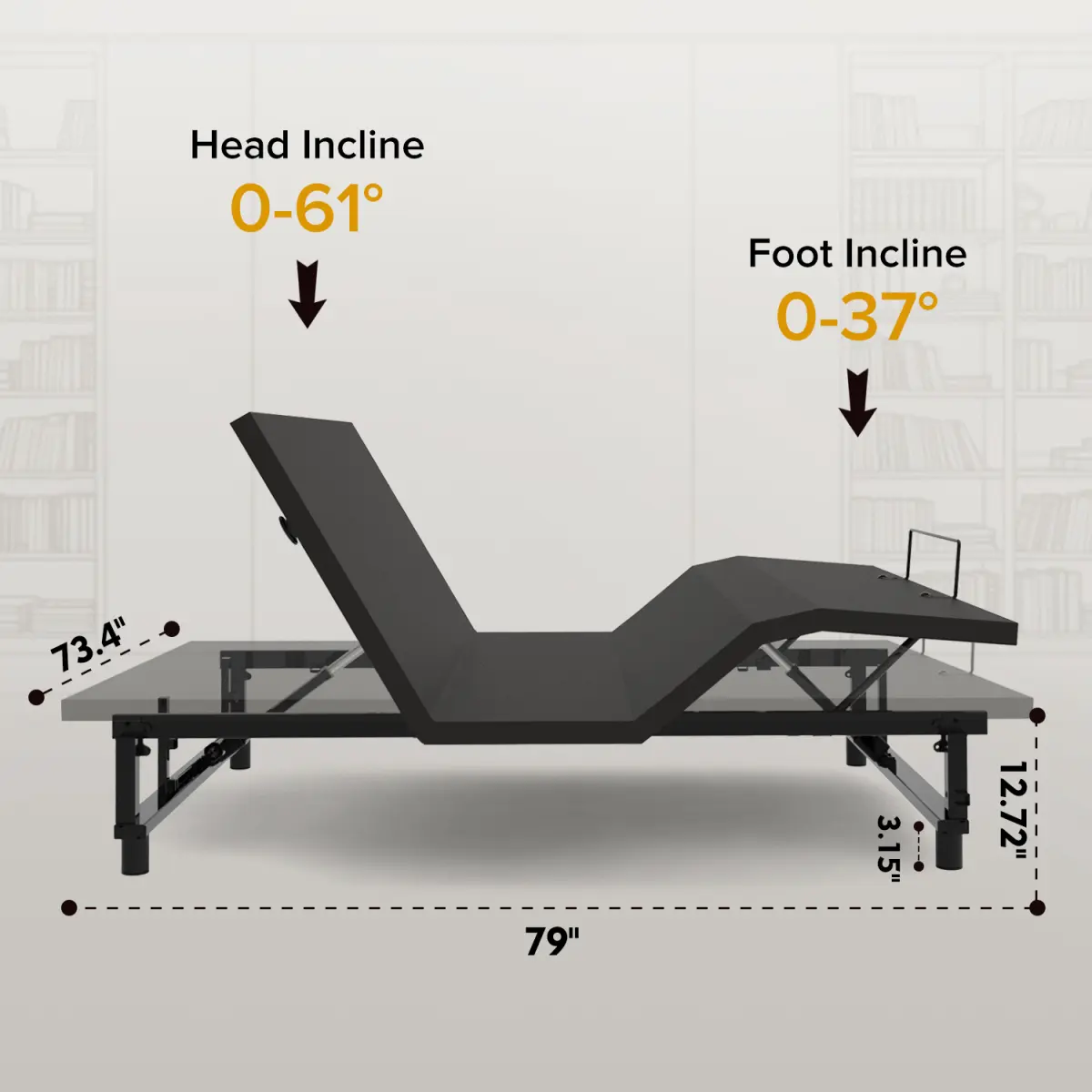 ·Adjustable Head and Foot Positions: Customize your comfort with the ability to separate and adjust the head and foot positions.The head can be adjusted from 0 to 61 degrees, and the foot can be adjusted from 0 to 37 degrees, allowing you to find the perfect sleeping or lounging position.