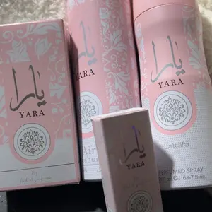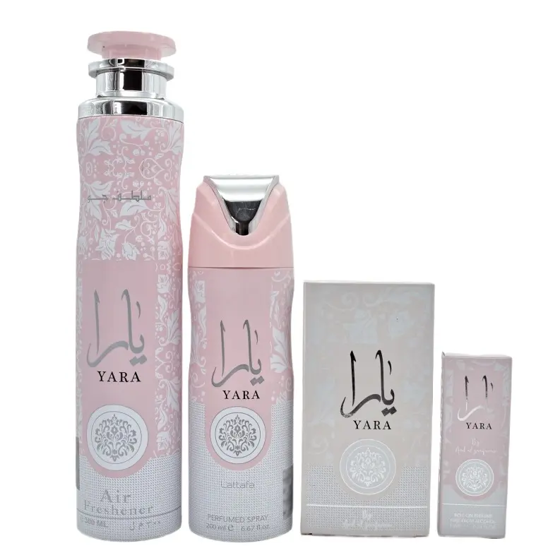 ✨ Discover the Yara Combo 4 Pcs - the most liked Arabic perfume set. It includes a 50ml Eau de Parfum, a 10ml Roll-on, a 200ml Body Spray, and a 300ml Air Freshener. Perfect for those who appreciate a comprehensive fragrance experience. Each item is designed to complement your daily routine, ensuring you stay aromatic throughout the day.