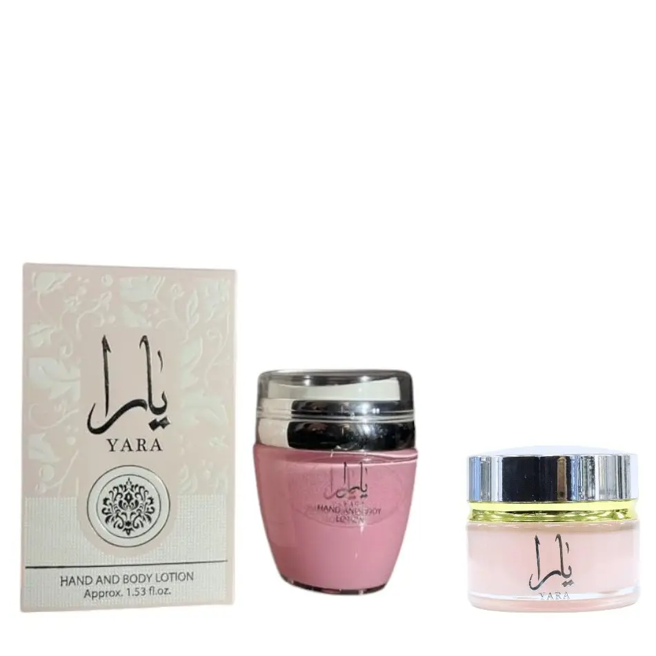 Indulge in the luxurious essence of the Lattafa Yara Cream + Yara Hand & Body Lotion bundle. This delightful duo features a rich cream and a hydrating lotion, both infused with enchanting fruity and floral notes that nourish your skin and uplift your senses.