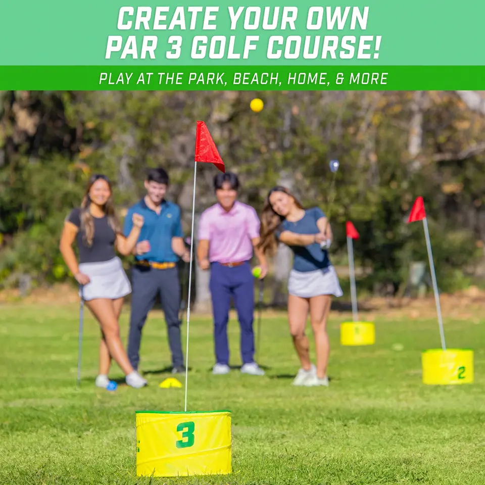 ·BUILD YOUR OWN COURSE: Yard Links is great for beaches, parks, large yards or any open space; Customize a 3 hole course and start playing in minutes; Optionally play indoors with modified rules