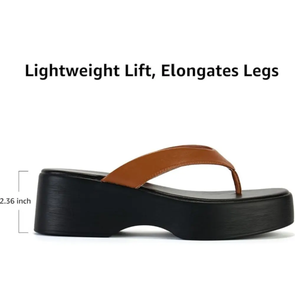 All-Day Comfort Cushioning: A subtle yet stylish 2.36 inch platform wedge heel adds height without sacrificing comfort. These platform flip-flops now feature 5mm thick padding (up from 4mm). Square toe provides ample room for toes to breathe, reducing friction and enhancing comfort.