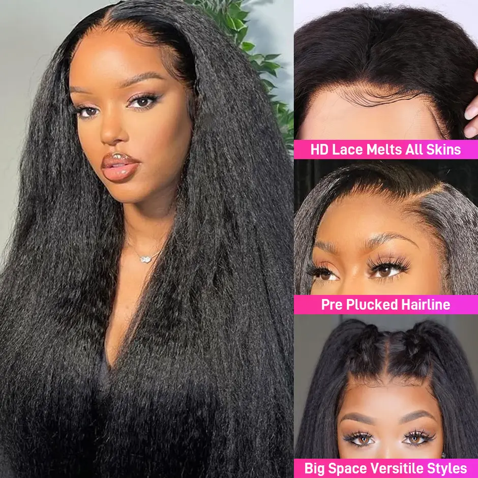 5. YAWAWE Hair 26 Inch Wear and Go Glueless Wig Kinky Straight Lace Pre Cut 7x5 Lace Front Wigs Human Hair for Women Glueless Wig with Elastic Band Natural Hairline 180% Density Yaki Hair Natural Black